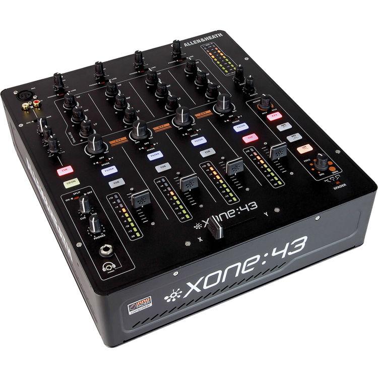 The XONE:43 from Allen & Heath is a 4+1 channel DJ mixer offering professional quality in a simple, yet intuitive layout for professional DJs, serious home enthusiast and night clubs. The mixer features the XONE analog filter with resonance control, 3-band EQ, a replaceable VCA crossfader, and the X:FX send and return that incorporates any outboard FX unit.