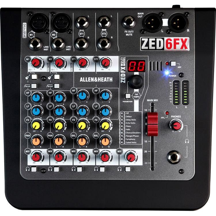 Designed to bring the signature Allen & Heath sensibility to a compact and portable frame, the ZED-6FX is a six-input analog mixer with an internal effects engine that sports reverb, delay, chorusing, and tap-tempo functionality. Solo musicians, lectures, and small bands alike can find this unit suitable for modest venues, hotels, churches, and schools.
