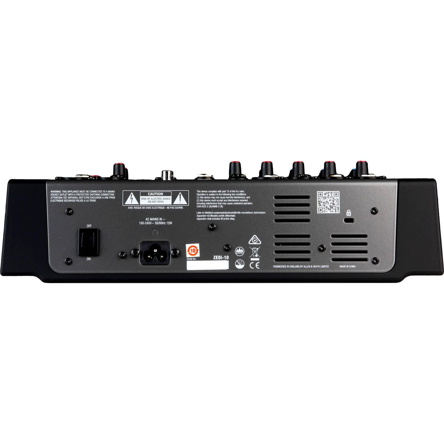 In the analog realm, the ZEDi-10 is crafted with preamps modeled on the Allen & Heath GS2-R24. These channel strips aim to provide warmth, low noise, and a vast expanse of headroom. On-board EQs also come standard with the unit. Two channels feature a button that converts line-level signal into high-impedance jacks, meaning guitar players need not lug an extra DI box around should they wish to go direct into the board.