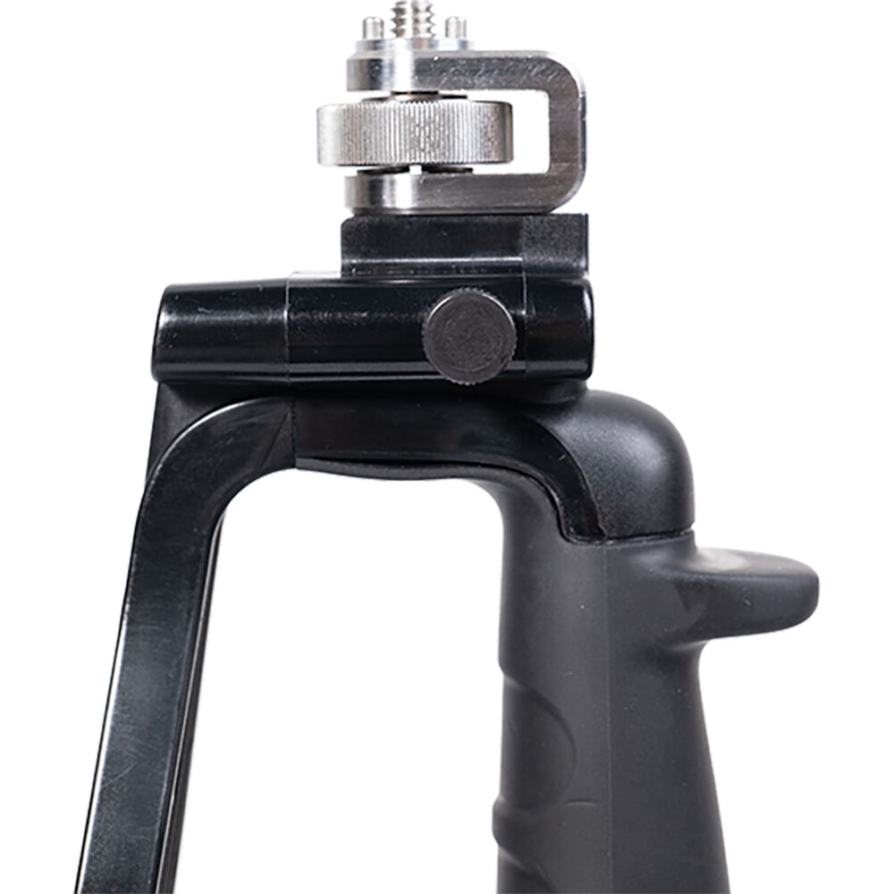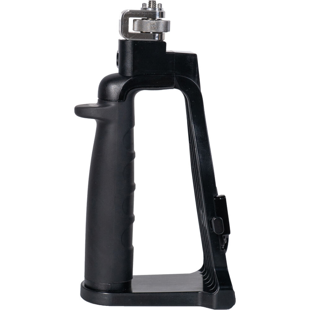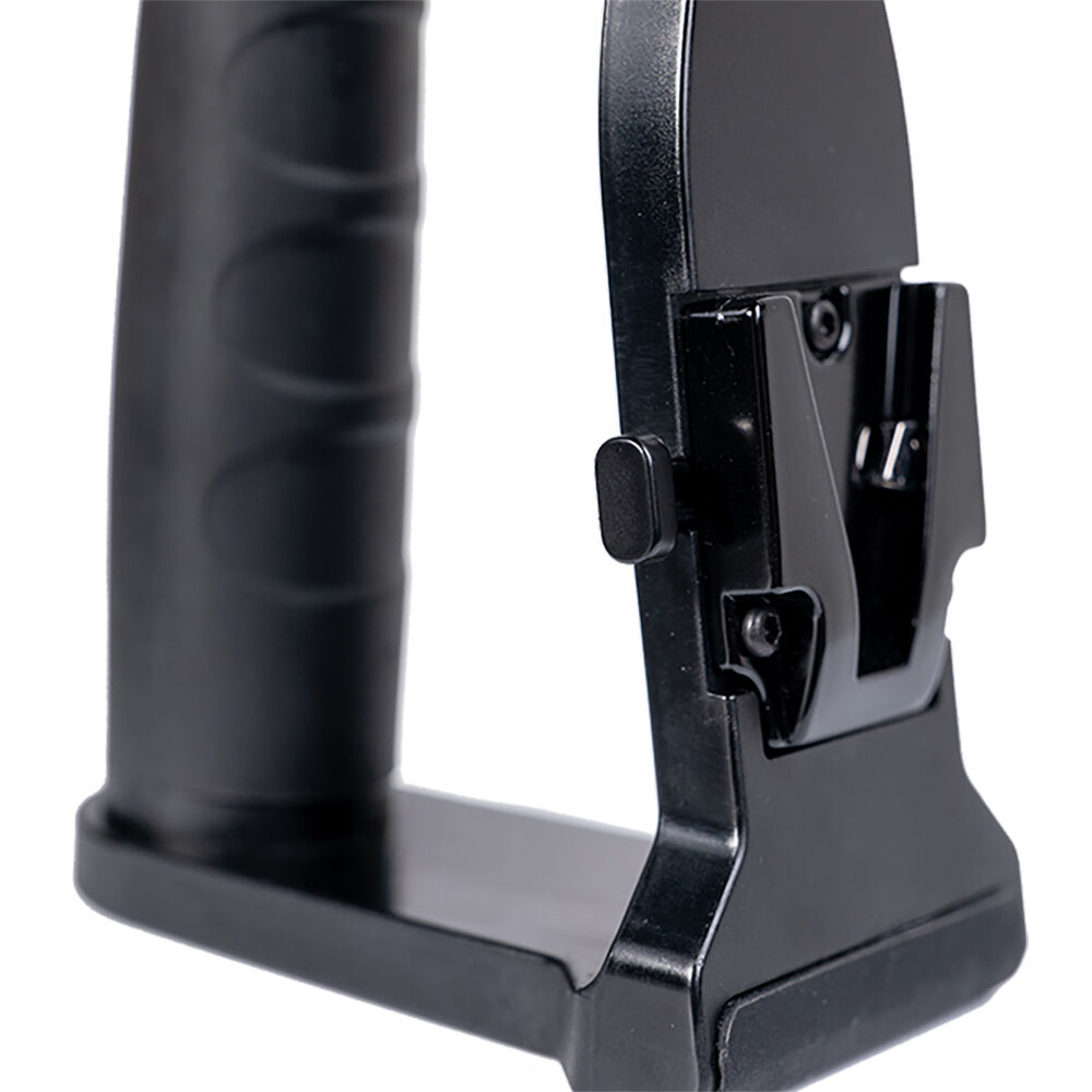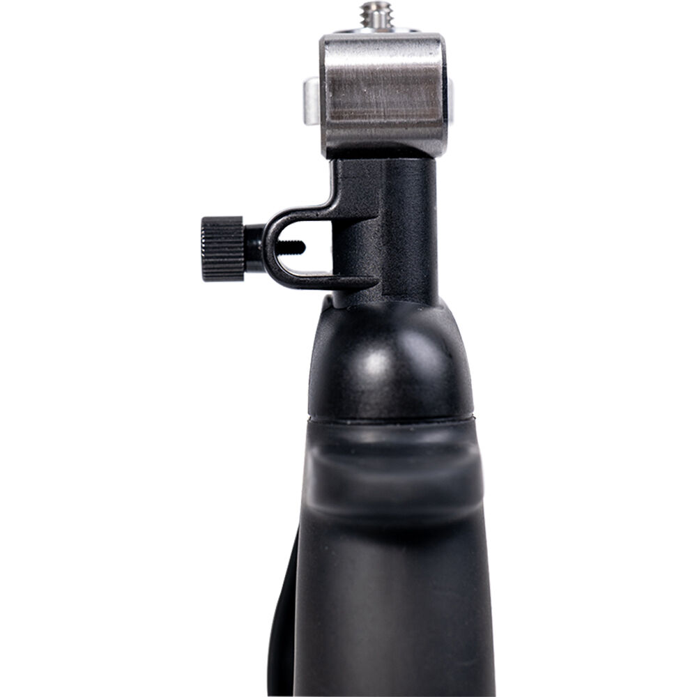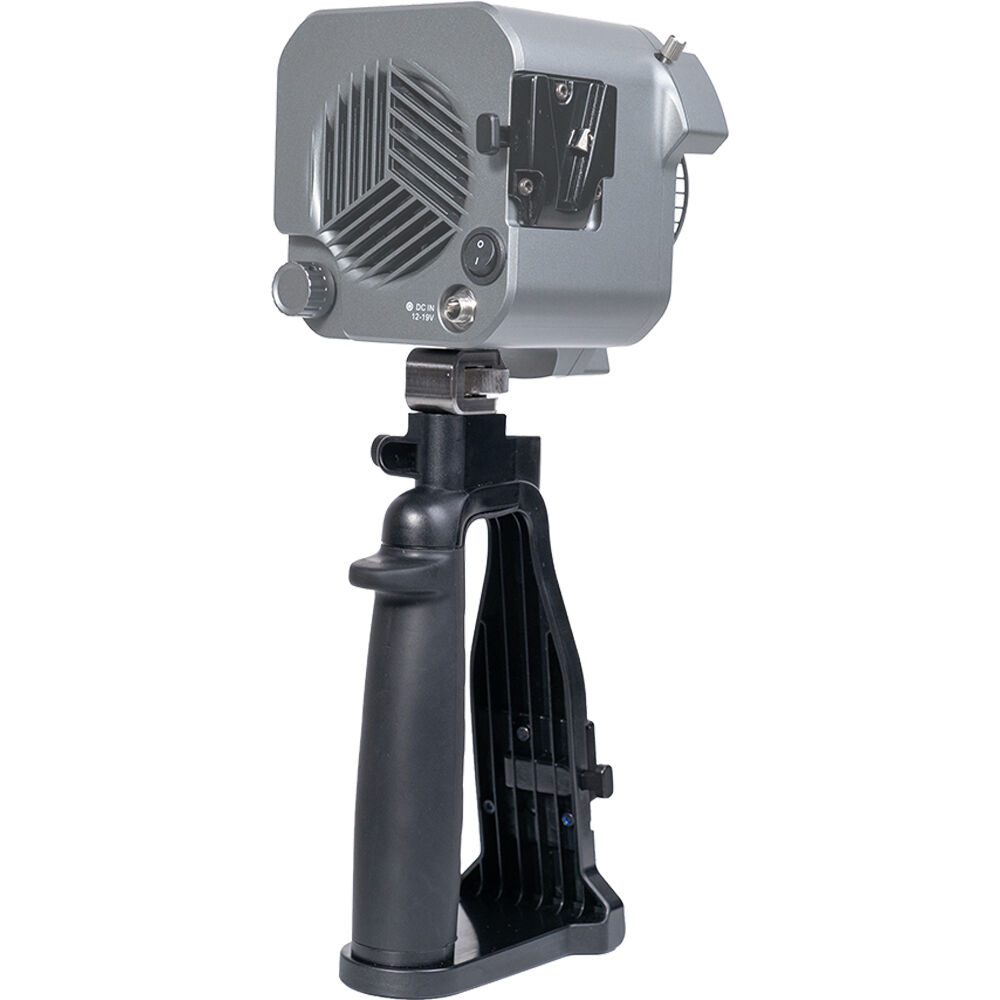 The Amaran COB 60 Series LED Monolight Handheld Bracket from Aputure has style and an ergonomic design. It is a convenient and comfortable way to handhold your COB 60-Series LED during long shoots. This portable and stable grip is made from high-strength ABS material and metal. It features a 1/4"-20 threaded tip, an umbrella shaft receiver with locking screw, and a V-mount plate for attaching a battery pack.
