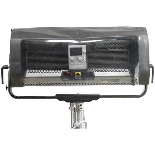 Designed for the Nova P600c LED Panel, this Rain Shield from Aputure protects the fixture from inclement weather. It features high-density waterproof nylon fabric, and installation is simple and intuitive with metal side supports that slide into the accessory slot of the panel. The shield also provides reusable hook-and-loop fasteners that can withstand 2,000 or more repeat applications.