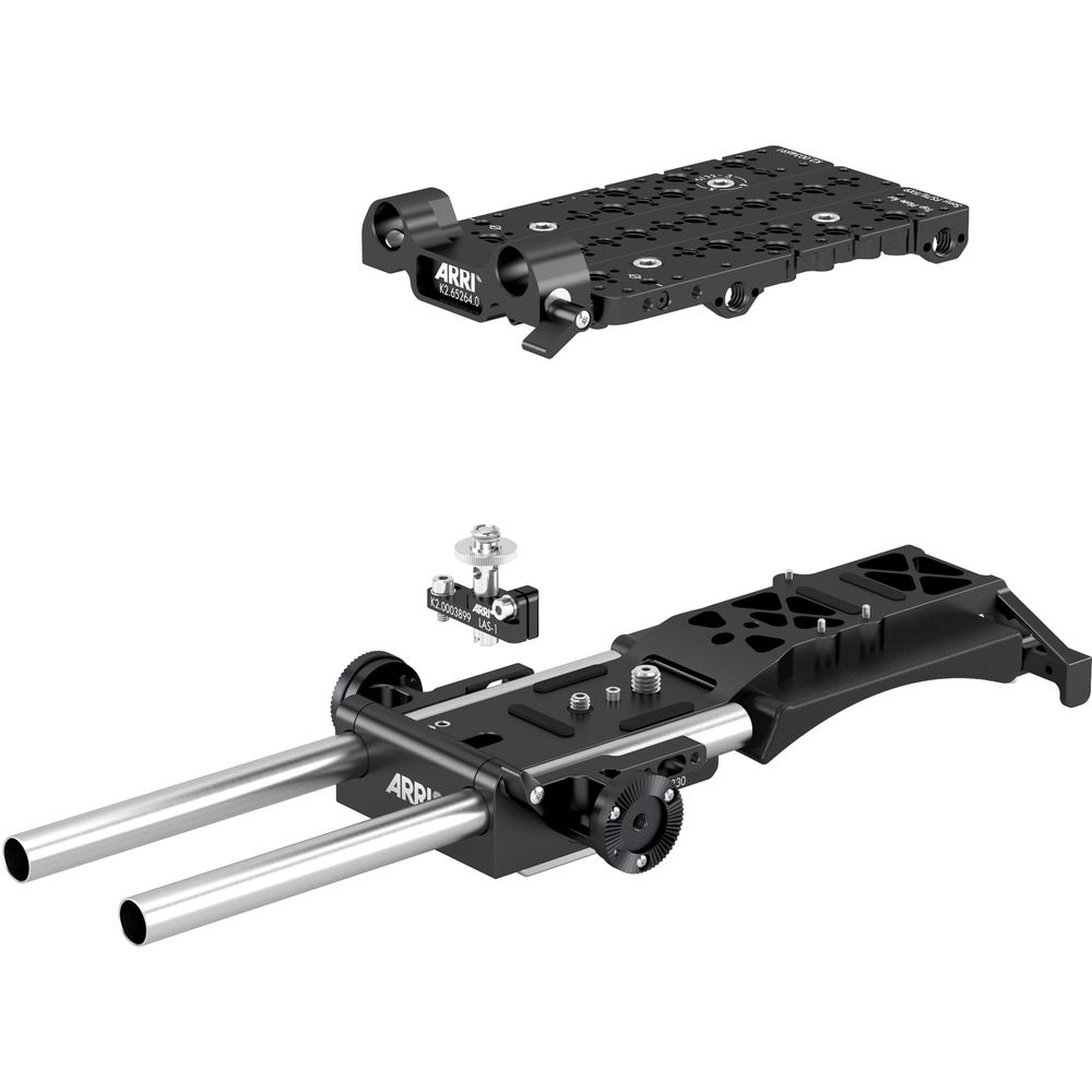 The Basic Set for Sony FS7M2/ FX9 from ARRI offers lightweight, handheld and tripod–compatible support for your PXW-FSM2 or PXW-FX9 camera. This set includes a VCT-compatible baseplate with a comfortable shoulder pad, a two-piece top plate that enables the use of your camera's original Sony handle, an LAS-1 lens adapter support, a 15mm LWS rod bracket, and a 9" pair of lightweight 15mm rods.
