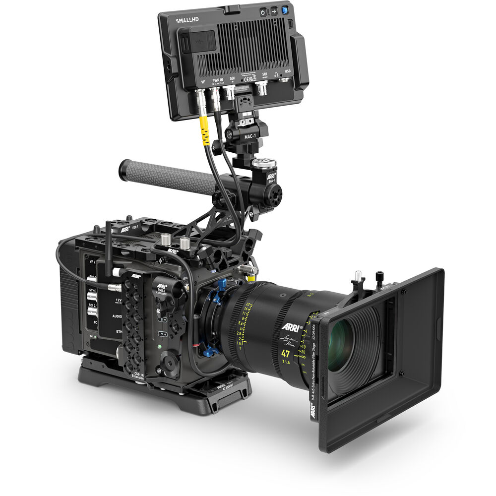 Use the compact Camera Control Monitor CCM-1 Set from ARRI to obtain both full camera control and menu access in a touchscreen display that is bright and sharp enough to use as an operating alternative to an EVF. This 7" onboard monitor features a single EVF-cable solution for imaging, control, and power for sleek rigging, BNC input and loop output, battery options, and a choice of touchscreen, side button, and joystick/button control. Display tools are based on the SmallHD monitoring tool kit familiar to many ACs and operators. This kit comprises the CCM-1 monitor, a folding sunshade, a screen protector, a tilting mount, a 1.5' VF cable, and a 1.6' RS power cable.