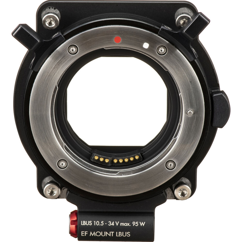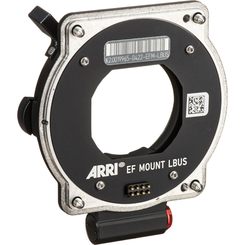 The ARRI EF Mount is an EF lens mount with an LBUS connector and reduced internal reflection properties that ensure the full contrast of the image from the lens reaches the sensor. This EF mount (LBUS) has a wide light baffle that illuminates both Super35 and large-format sensor areas. It allows control of the electronic iris in many EF lenses through the camera menu and ARRI ECS devices. It also allows the use of the electronic image stabilization found in some EF lenses.