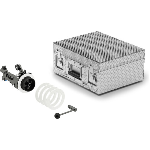 The sleek, black-finished FF-4 15mm Follow Focus Set (Black Edition) from ARRI includes a single-sided follow focus, one standard knob, a gear for prime lenses and smaller zooms, four marking disks, and a speed crank. This robust, economical unit includes an adapter enabling it to snap onto 15mm lightweight support rods. A hard-sided carrying case is included to transport and protect all the components in the set.