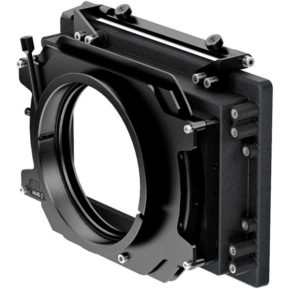 The compact MMB-2 Basic Module Double 4 x 5.65" from ARRI supports up to two 4 x 4.56"/4 x 4" combo filter frames in non-rotating stages. This very lightweight Basic Module incorporates a 114mm clamp-on back and a sunshade. Separately available options include a 15mm LWS rod bracket and a top flag.