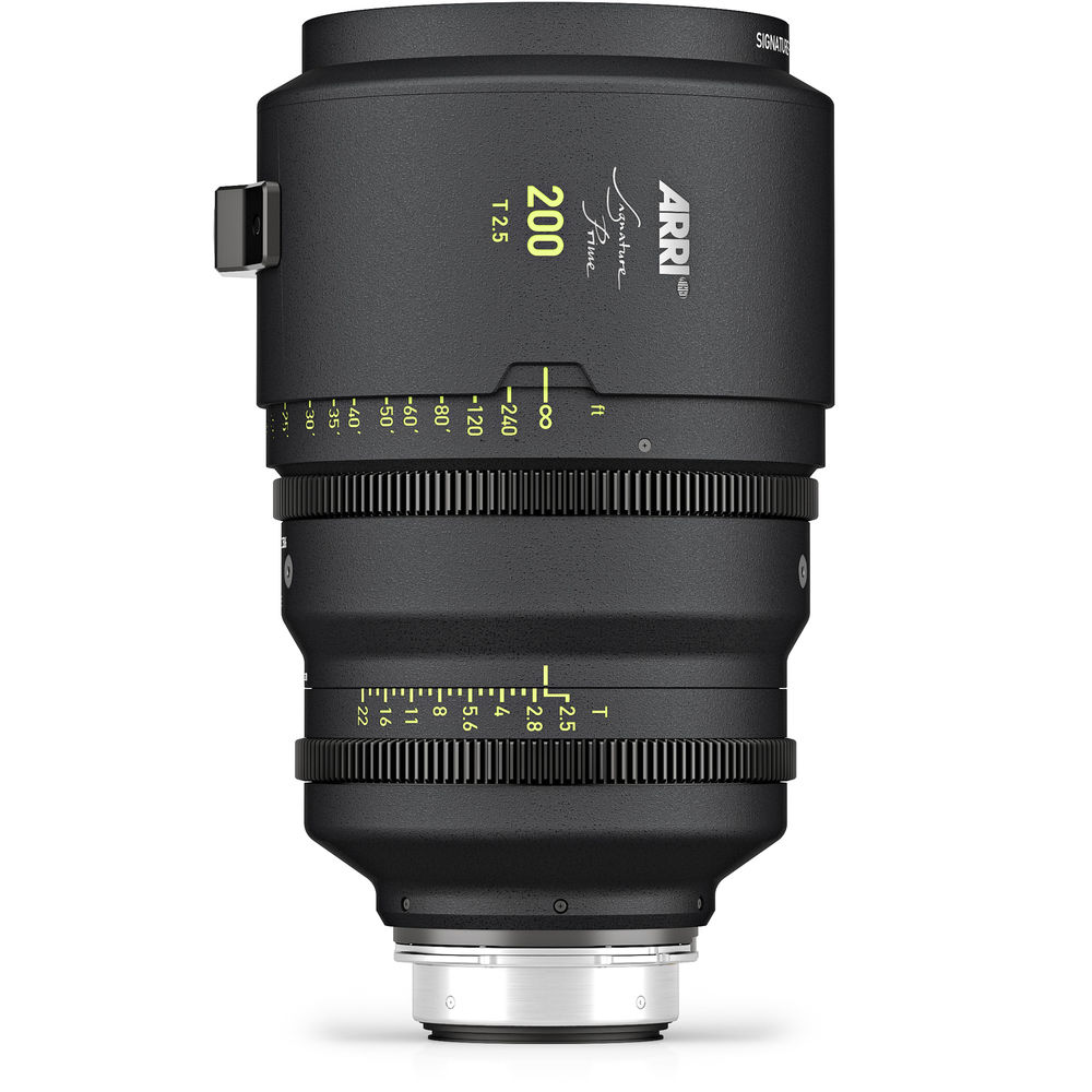 Constructed with magnesium housings and aluminum gear rings, each Signature Prime is lightweight, water-resistant, and features focus marks in feet. Anti-reflective coatings, light baffles, and light traps help to minimize any internal barrel flare. Should a stunt go awry, or your camera rig be otherwise damaged, the lens mechanics are designed for easier access at an ARRI service center. The 200mm ARRI Signature Prime focuses down to 60" from the lens front, and features a relatively light weight of 7.9 pounds, and a compact length of 8.6".