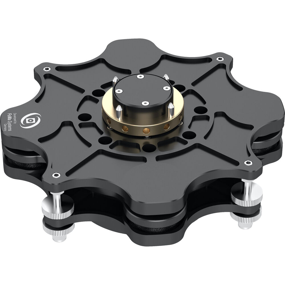 Reduce unwanted motion in your remote head shots with the imperial threaded ARRI Vibration Isolator Gen 2 for SRH basic set. This super-compact unit employs four polymer damping elements to absorb unwanted vertical and angular movements in your head's roll and tilt axes. It simultaneously maintains definition and stability in the pan axis, enabling the torque power for the pan axis to be maxed out when needed. This set bundles the Vibration Isolator Gen 2 with a Mitchell-mount castle nut, a wrench, and a hard-shell case to hold all the components.