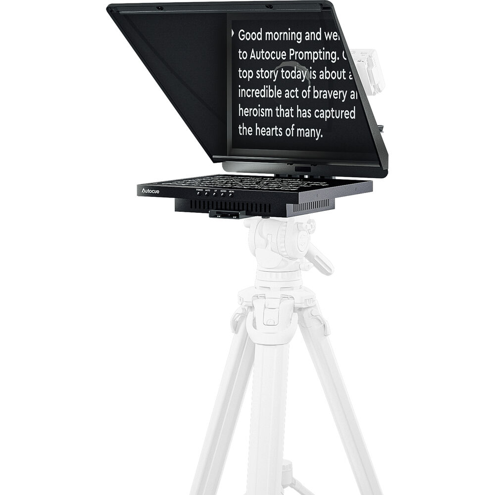 The included mounting kit and accessories adapt to your gear for quick adjustments without requiring tools. Secure your recording device of choice to the camera carriage with the 1/4"-20 and 3/8"-16 screws and adjust the base to lens center height from 2 to 5.5". Move the carriage along the 19mm rod set and achieve the perfect camera balance. A medium-sized hood with collapsible fabric lens seal ensures light doesn't peek through the 70/30 Beamsplitter glass. A 1-year license for Autocue's Explorer Teleprompting Software is included with the system.
