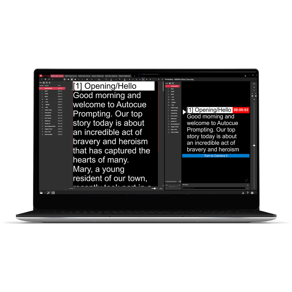 Shortcuts, bookmarks, and a run order manager are included in the software. Edit your settings for Sound on Tape (SOTs) and presenter instructions. An on-screen cue timer and message modules further improve communication between control room and talent.