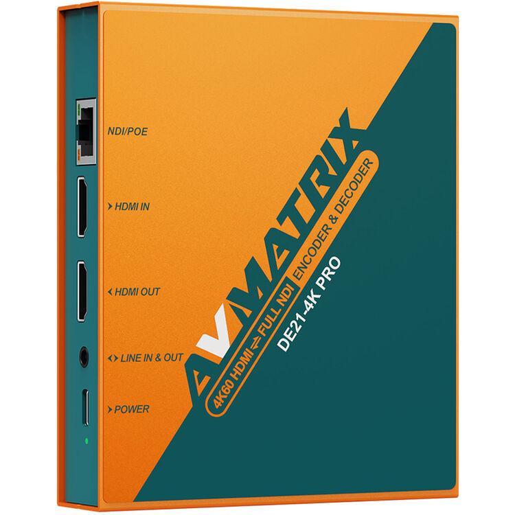 The DE21-4K Pro provides conversion between full NDI and HDMI in either direction, and it supports up to 4K60 4:2:2 video resolution. The HDMI output port can also serve as a loop output for the encoded video.