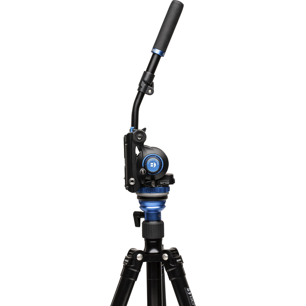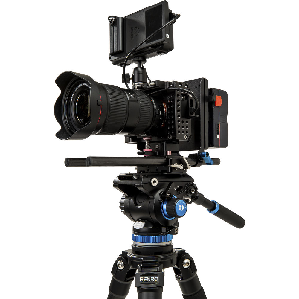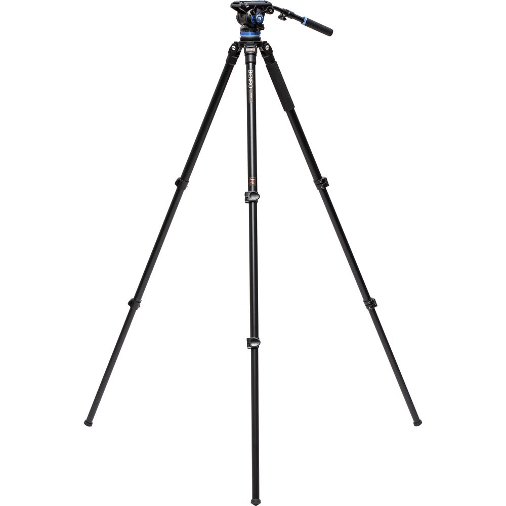 The A373F Aluminum Single-Tube Tripod from Benro features a 75mm bowl and includes a 75mm half-ball adapter. It's paired with the S6Pro Fluid Video Head, which has a 65mm flat base that attaches right to the half-ball adapter. The head supports up to 13.2 lb loads, and thanks to the flat base design with a 3/8"-16 thread underneath, the head can be moved from the tripod directly to sliders, jibs, and other support gear. The versatile system has a compact design with 2-stage/3-section single-tube legs and both rubber and spiked feet for use on virtually all surfaces. Each leg of the tripod is independently adjustable into three positions, allowing you to set up quickly and efficiently.