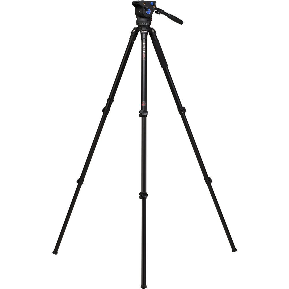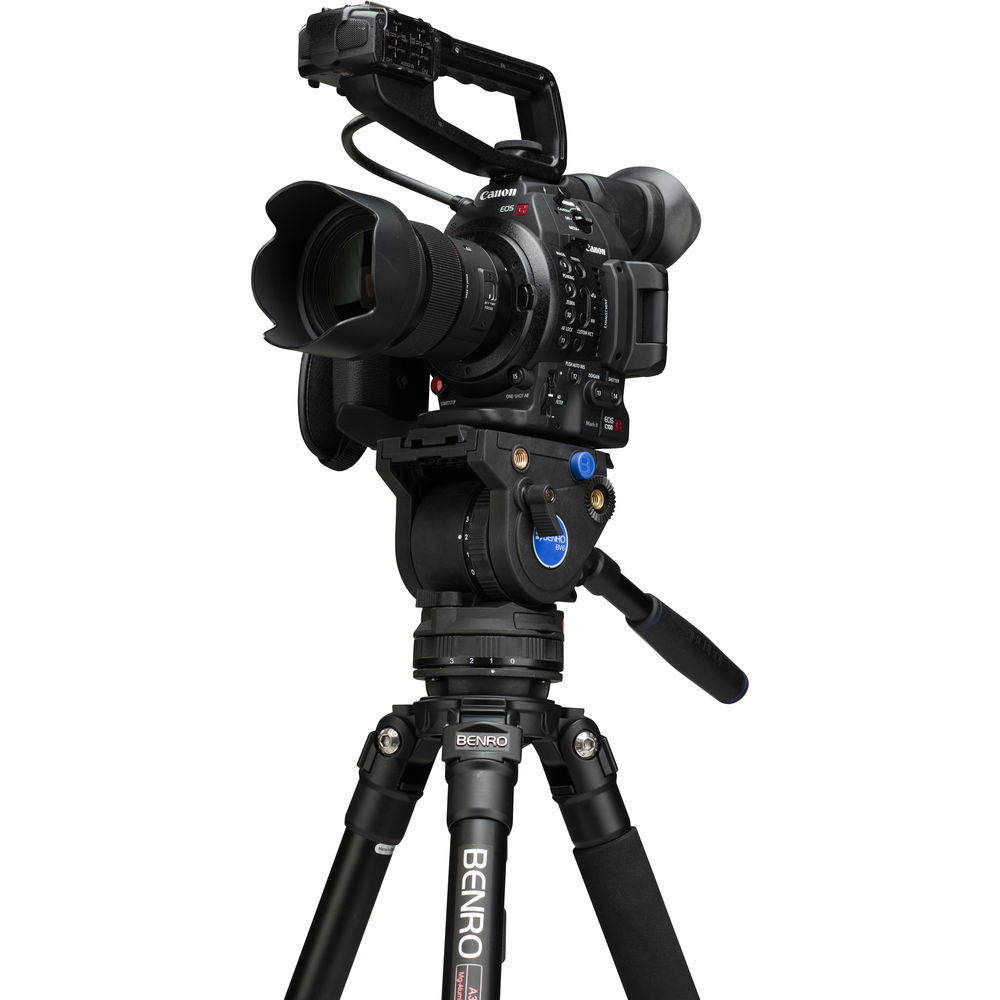 Create stable video with the A373F Series 3 Aluminum Video Tripod and BV6 Head from Benro. Able to hold a payload of up to 13.2 lb, this tripod is a great choice for lightweight kits, especially with numerous video-specific features. The BV6 head features side controls for adjusting the 8-step counterbalance as well as the independent 4-step pan and tilt drag. The 2-stage tripod legs feature flip legs locks for fast adjustments and have a 75mm bowl on the top for balancing the head. The tripod system can be adjusted within a height range of 12.2 to 64.2", and it offers two 3/8"-16 accessory threads for a monitor, audio recorder, or more. It comes with both rubber and spiked feet for working in a variety of environments. A carrying case is included as well.