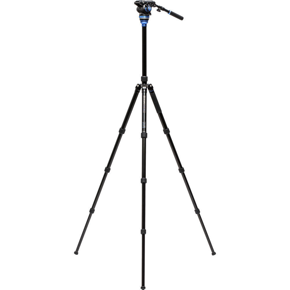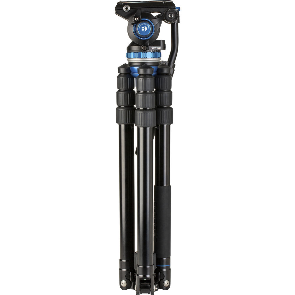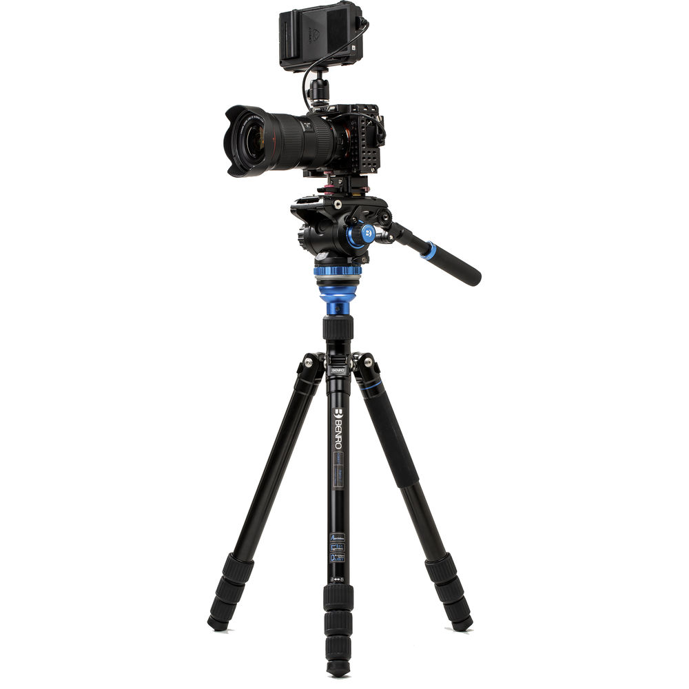 The A3883 Reverse-Folding Aluminum Travel Tripod with S6Pro Fluid Video Head from Benro features a highly compact travel tripod that can be converted to a monopod, and a compact fluid head with a 65mm flat base that allows moving the head directly to most sliders, jibs, and other support gear. The head supports up to 13.2 lb loads and offers 5+0 steps of counterbalance.
