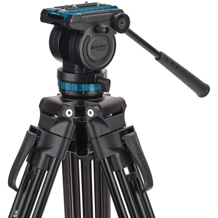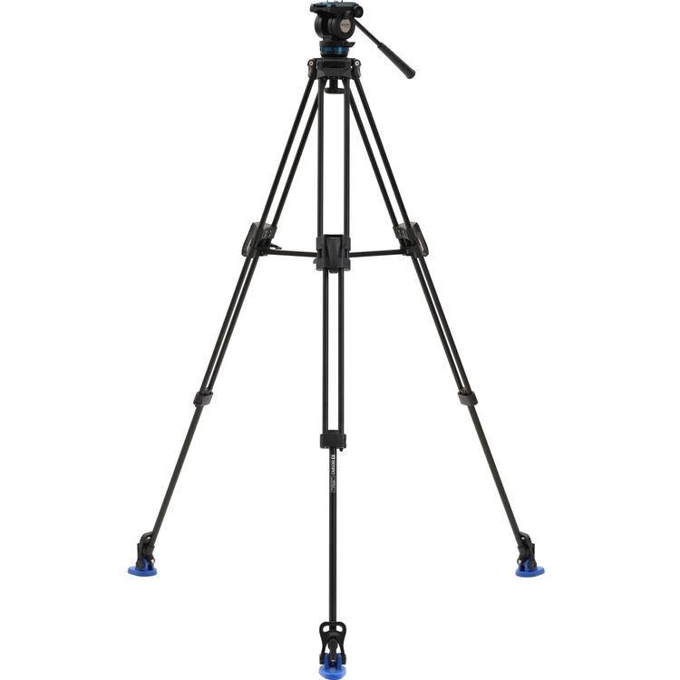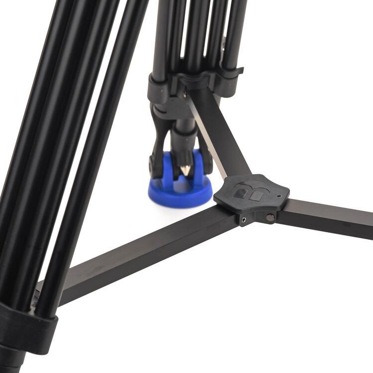 The aluminum A572LLKH Lightning Lock Tripod Kit with KH Head from Benro pairs the 60mm bowl KH video head with the superfast Lightning Lock tripod featuring single flip-lock adjustments. The KH head features a 15 lb payload and continuous pan drag. This tripod kit comes with convertible spiked/rubber feet and a carrying bag.