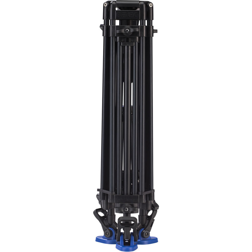 The aluminum A673TM Tandem-Leg Video Tripod from Benro is a video tripod with a 75mm bowl, compatible with industry-standard 75mm video heads. The three-section double-tandem leg design allows for height adjustment and offers enhanced torsional rigidity, making this tripod well-suited for use with rigged cameras and heavy loads up to 110 lb. An adjustable and removable mid-level spreader provides control over the A673TM's footprint, and a bubble level helps you hew to the horizon.