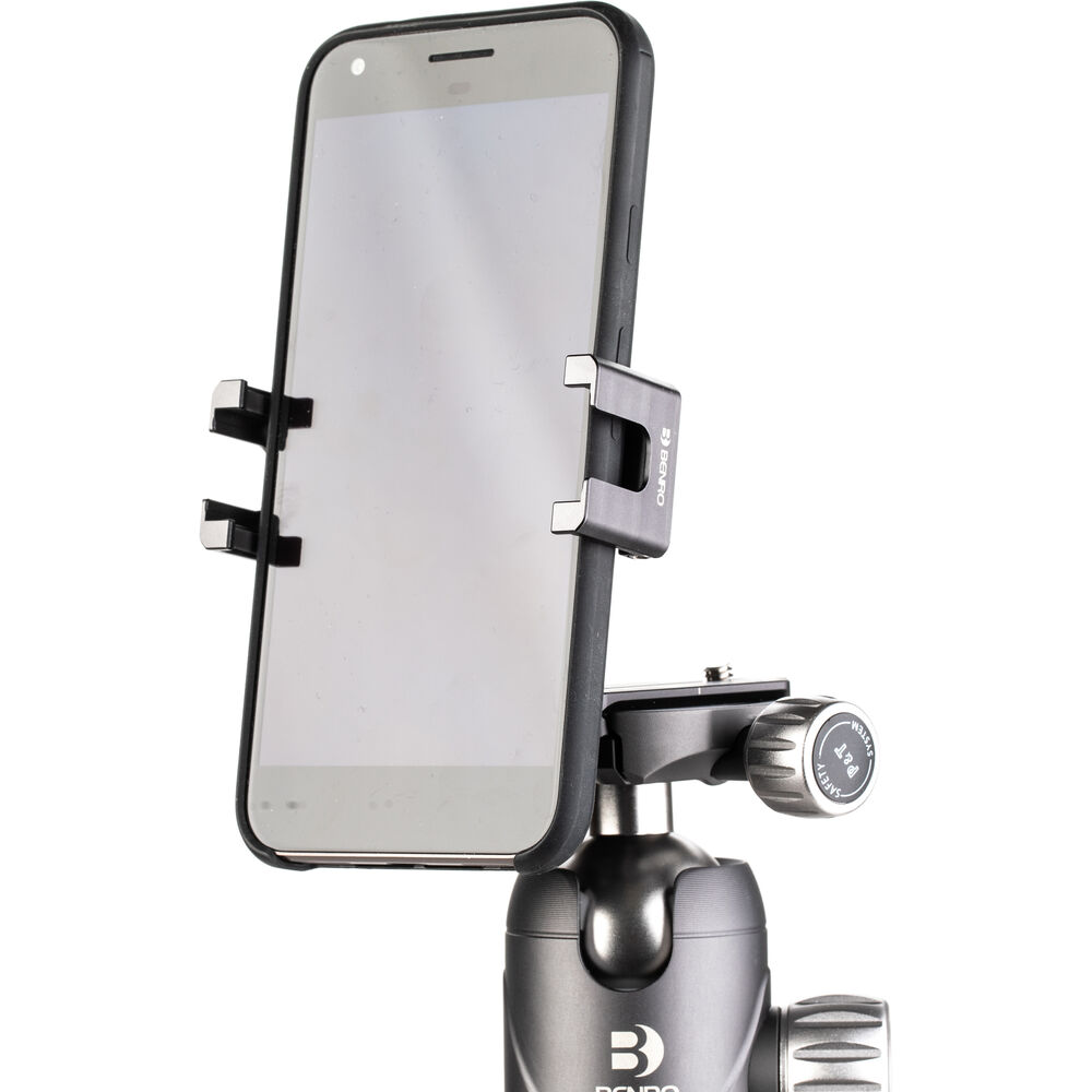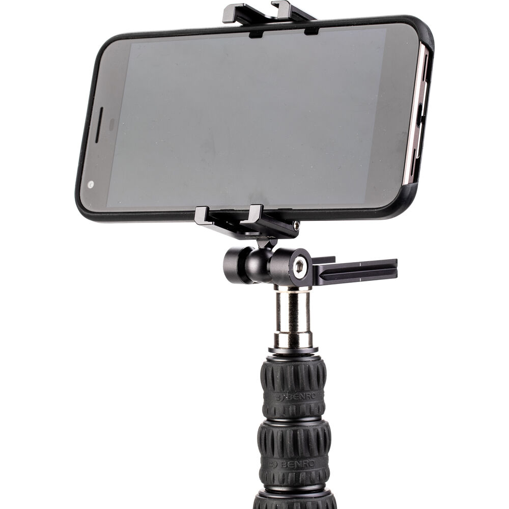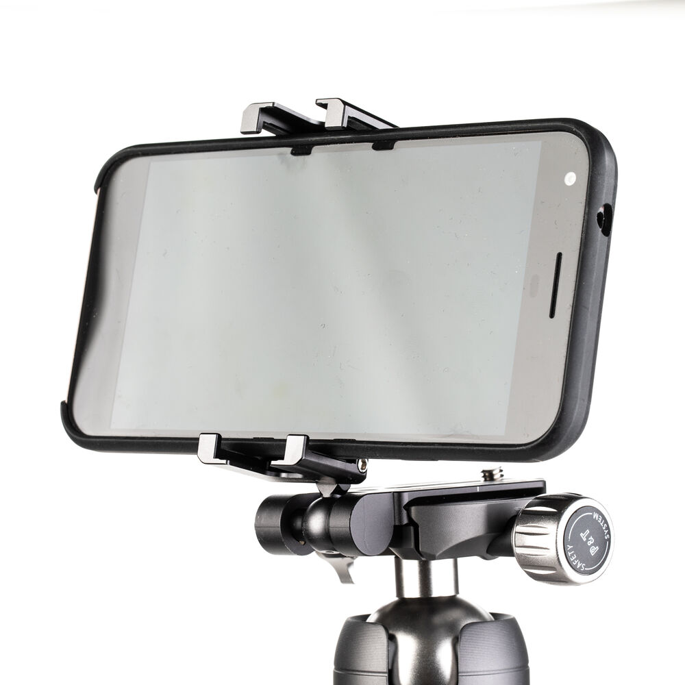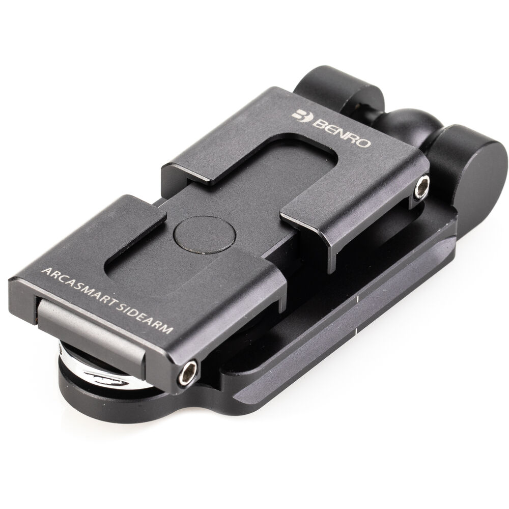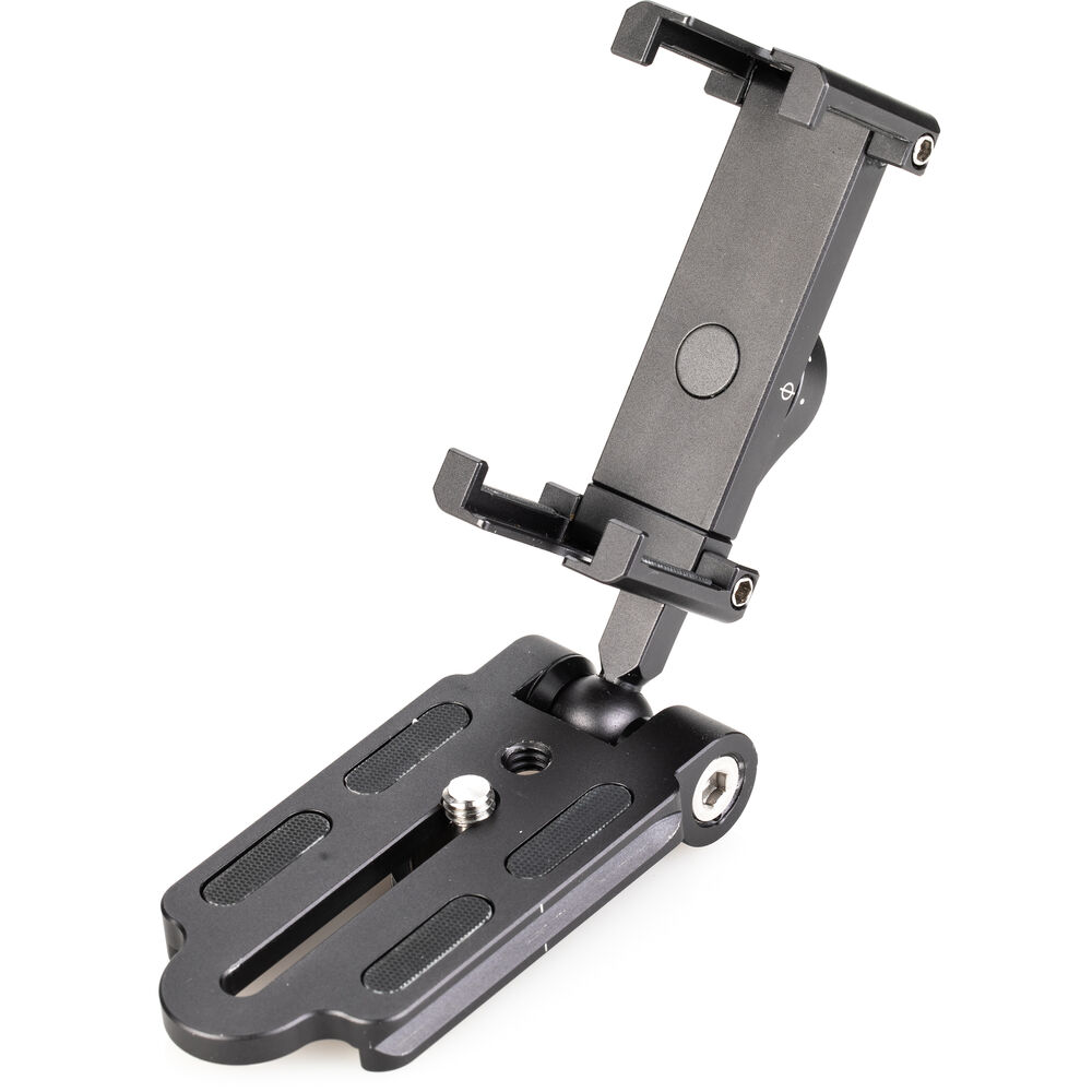With the ArcaSmart Sidearm Camera Mount & Smartphone Clamp from Benro, you have the option of purely mobile filmmaking or adding a phone as a sidekick to your traditional DSLR setup. The mounting plate can connect to a tripod via an Arca-Swiss style quick release clamp, or the 1/4"-20 threaded female connection. Once attached, the sidearm's clamps can be unfolded to hold your smartphone. Attach a DSLR camera to the plate and use the phone as a monitor or additional filming, or shoot exclusively with your smartphone.