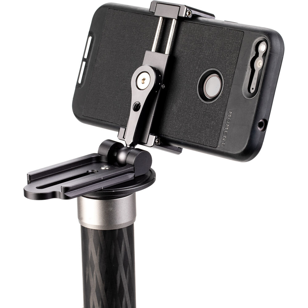 Each sidearm phone clamp has a built-in cold shoe for optional accessories, such as an external microphone, receiver, or LED illuminator.