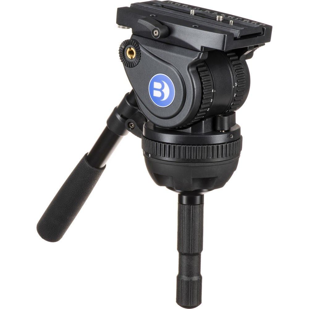 The BV10H fluid head features a 4-step counterbalance system with a zero setting for when you want the head to be completely free. Likewise, the pan and tilt functions feature three steps, plus a zero setting. Pan and tilt drag are independent and each function has its own lock. An integrated 3/8"-16 threaded mounting hole enables you to mount accessories directly to the head, relieving the strain of mounting them to your camera. The panhandle mounts via a rosette, and can be attached to either side of the fluid head. An integrated bubble level helps you quickly level the head.