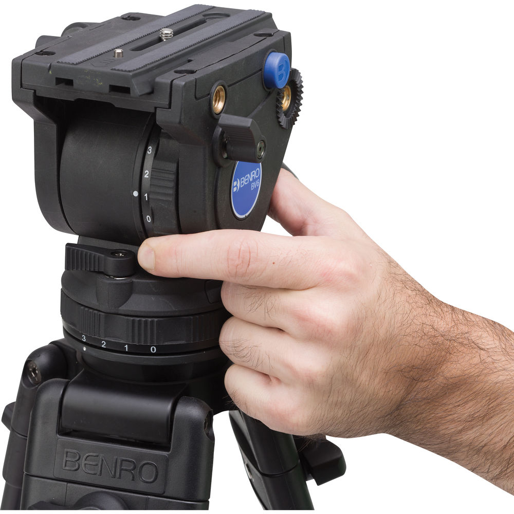 The Benro BV6 Video Head is designed for use with 75mm bowl tripods and supports loads up to 13.2 pounds. It features an 8-step counterbalance system to dial in the correct amount for your setup, and independent 4-step pan and tilt drag settings for precise control over camera movements. A Manfrotto 501/504PL compatible sliding quick release plate is provided, making it easy to set the balance point for your gear.