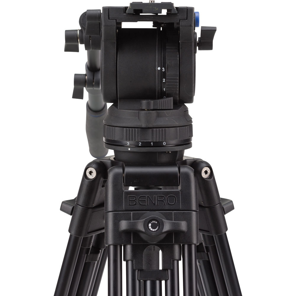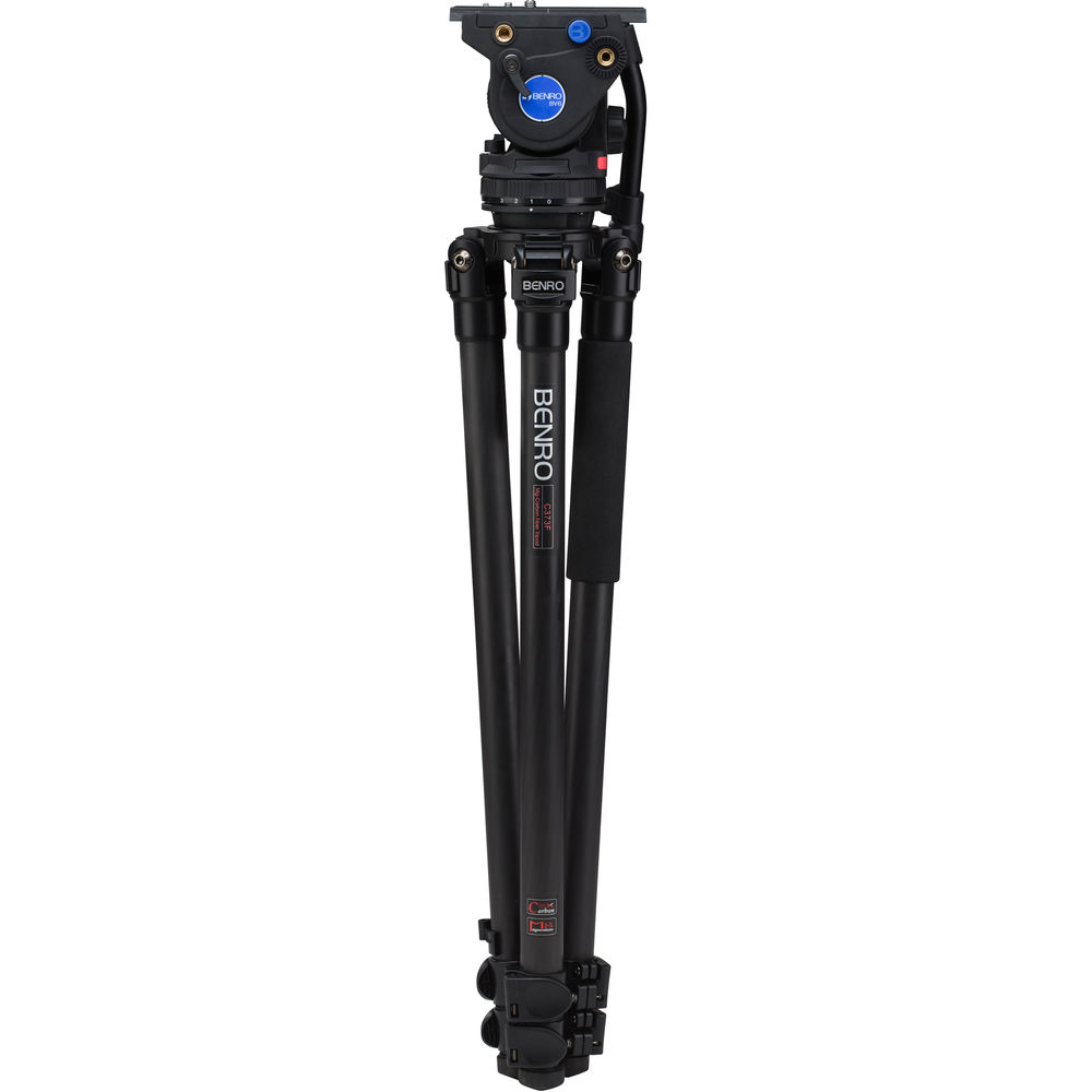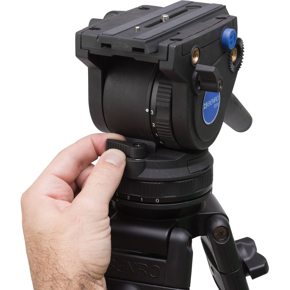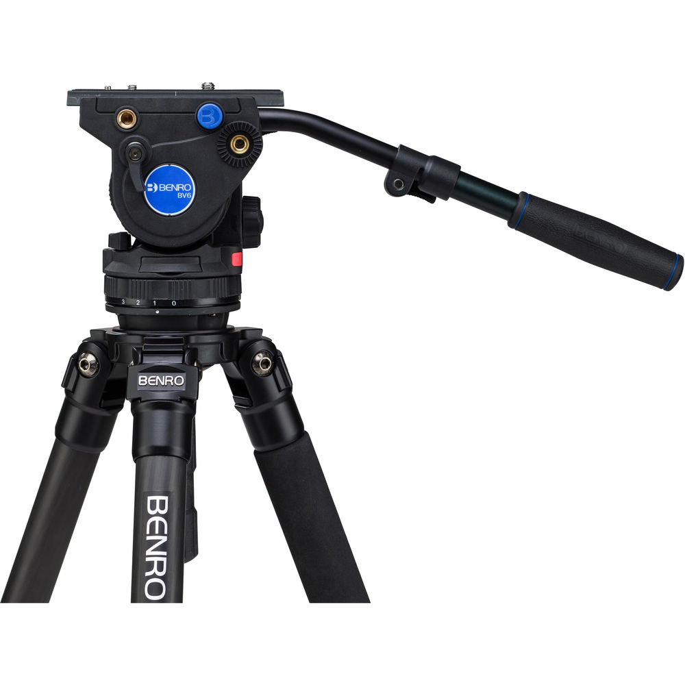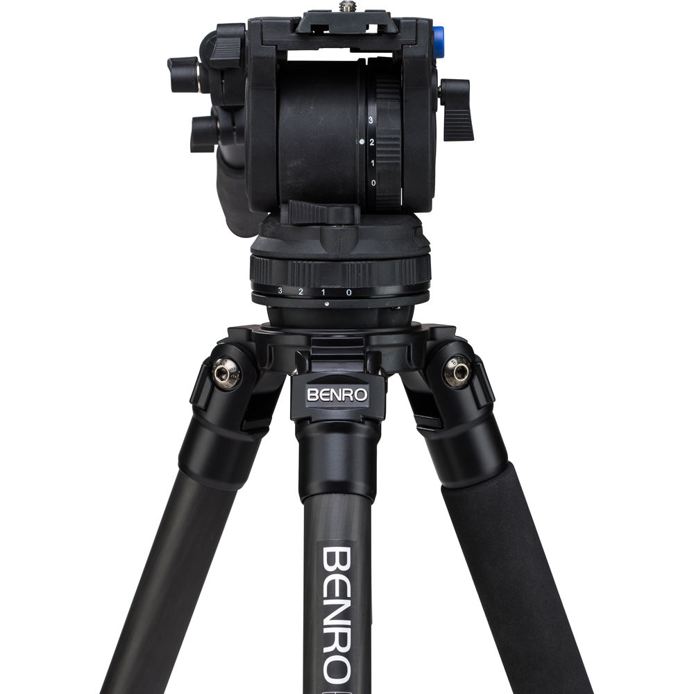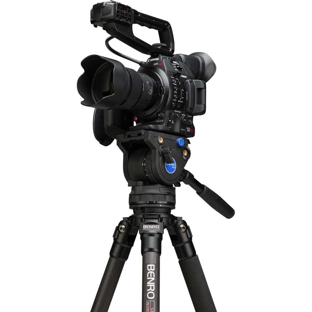Create stable video with the C373F Series 3 Carbon Fiber Video Tripod and BV6 Head from Benro. Able to hold a payload of up to 13.2 lb, this tripod is a great choice for lightweight kits, especially with numerous video-specific features. The BV6 head features side controls for adjusting the 8-step counterbalance as well as the independent 4-step pan and tilt drag. The 2-stage tripod legs feature flip legs locks for fast adjustments and have a 75mm bowl on the top for balancing the head. The tripod system can be adjusted within a height range of 12.2 to 64.2", and it offers two 3/8"-16 accessory threads for a monitor, audio recorder, or more. It comes with both rubber and spiked feet for working in a variety of environments. A carrying case is included as well.
