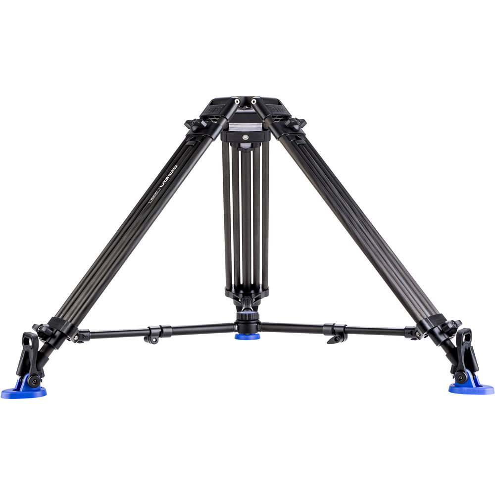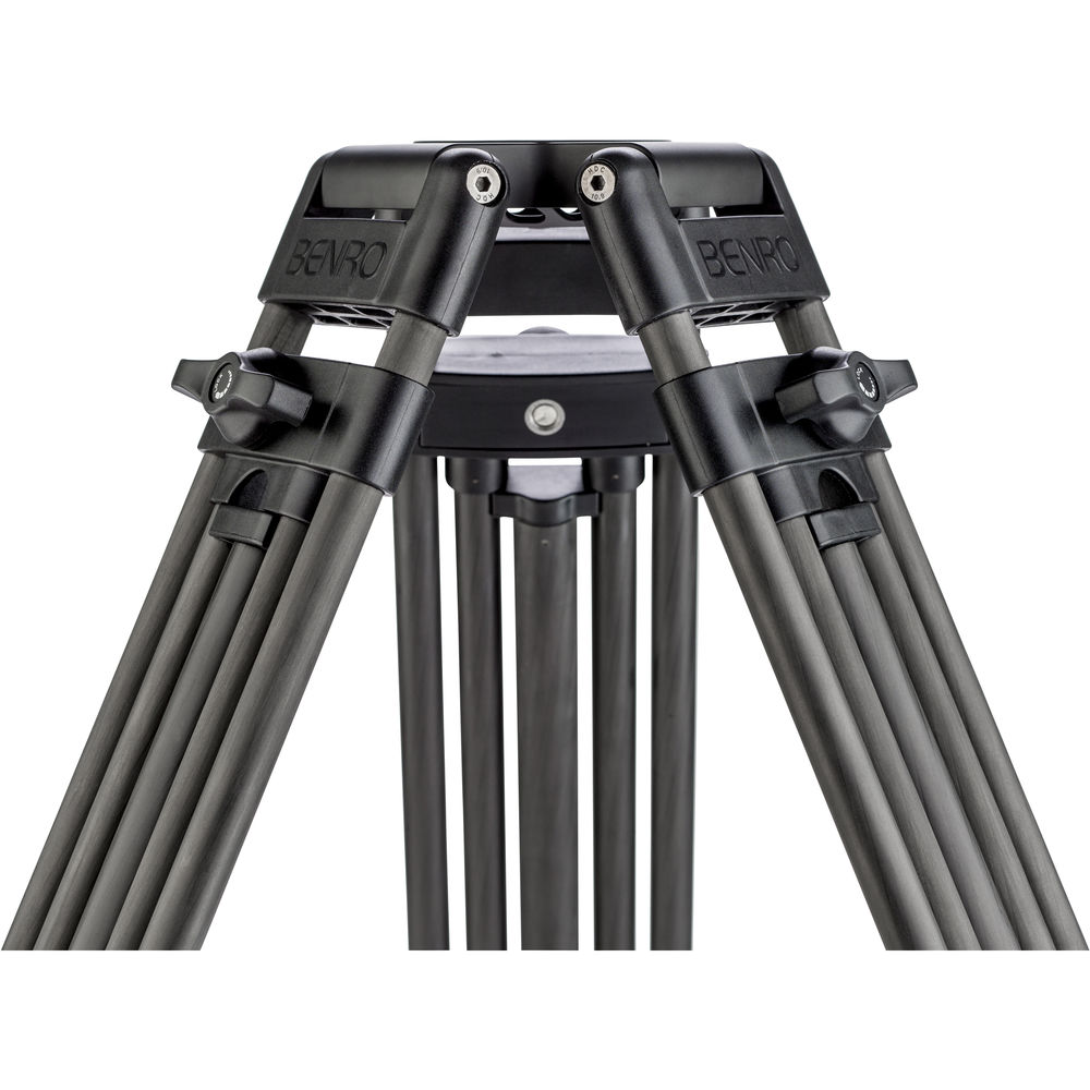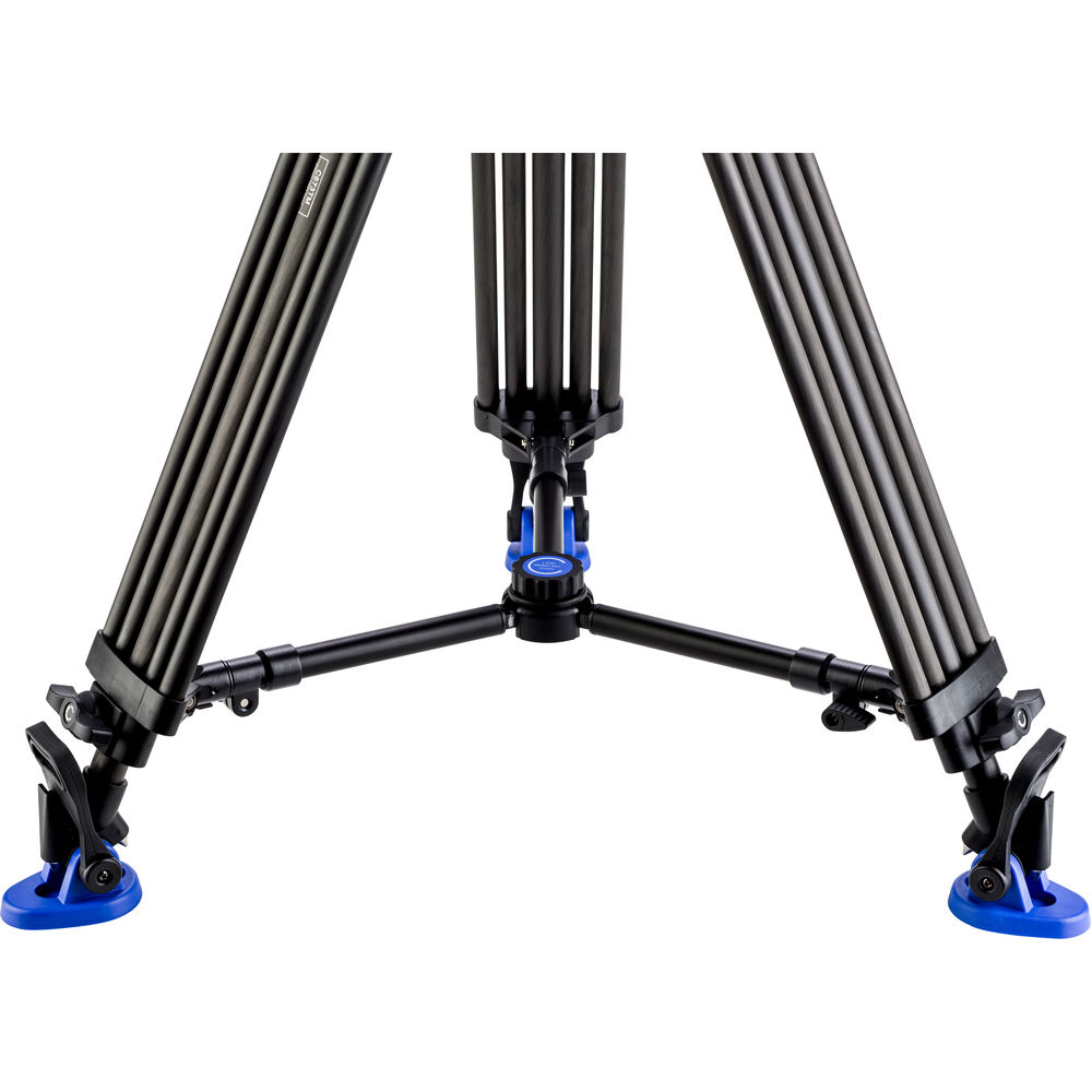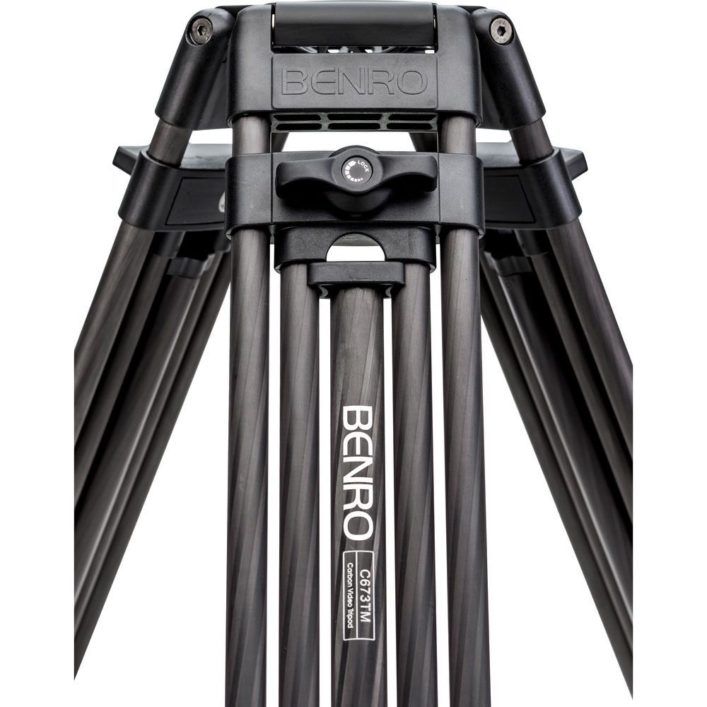 The carbon fiber C673TM Tandem-Leg Video Tripod from Benro is a video tripod with a 75mm bowl, compatible with industry-standard 75mm video heads. The three-section double-tandem leg design allows for height adjustment and offers enhanced torsional rigidity, making this tripod well-suited for use with rigged cameras and heavy loads up to 110 lb. An adjustable and removable mid-level spreader provides control over the C673TM's footprint, and a bubble level helps you hew to the horizon.