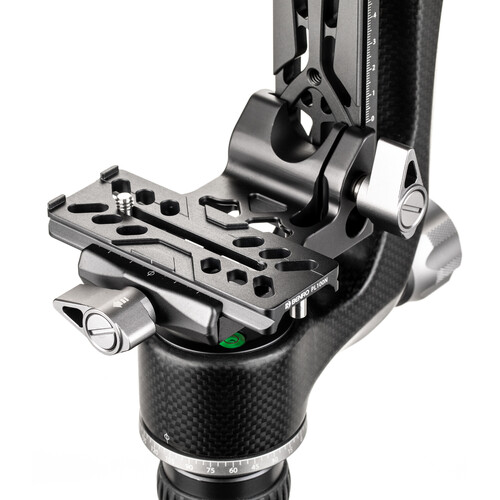 The Benro PL100N is an Arca-type compatible camera plate for the GH5C mini gimbal head. It features a machined, hollowed out design to reduce weight while retaining its strength.