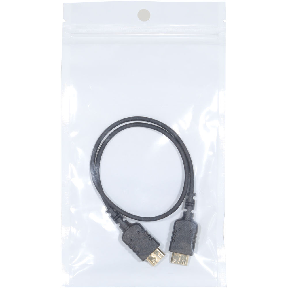 The camera output plugs into the second mini-HDMI port on the gimbal with a separately available HDMI cable, and the video is routed through the internal cabling of the gimbal to the monitor. The cable measures 13" long.