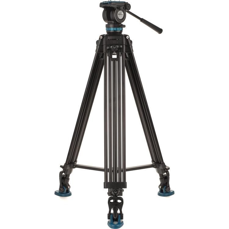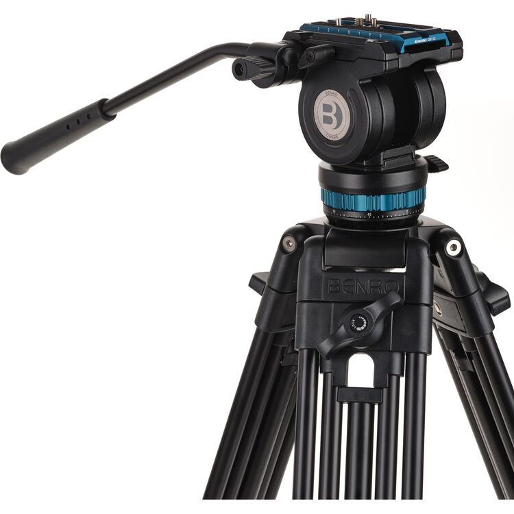 The KH26PC Video Head & Tripod Kit from Benro is a sturdy 2-stage aluminum tripod with an integrated mid-level spreader designed for supporting DSLRs, mirrorless cameras, and smaller video cameras. It replaces the popular KH26P, upgrading the overall payload capacity to 15 lb. This new model also provides an improved quick release system with two spring-loaded locating pins and a wider range of compatibility with select camera plates.