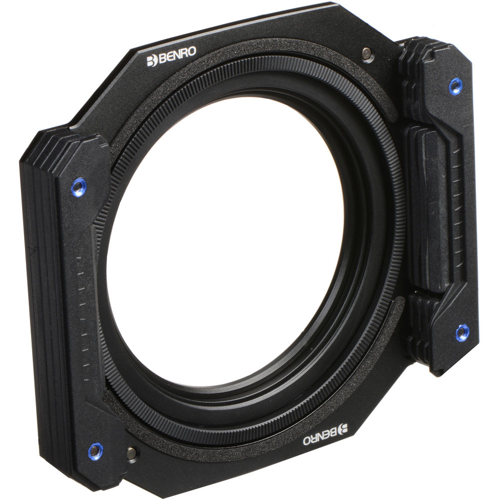 Made of aluminum alloy for durability, this Master Series 100mm Filter Holder from Benro is compatible with filters with a width of 100mm and up to 2mm thick. It comes paired with an 82mm mounting ring and an 82-77mm step-down ring, which allows you to mount the holder to lenses with front threads of either size.