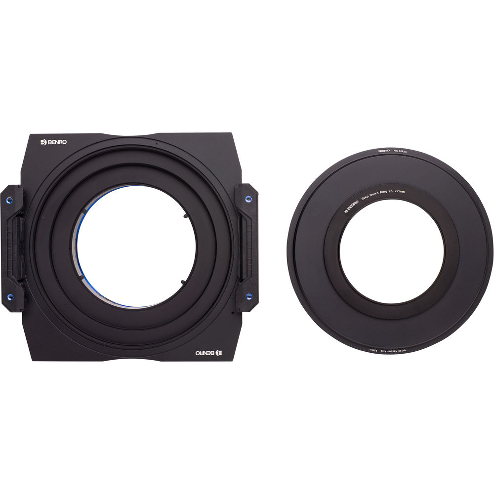 Designed specifically for the Sigma 12-24mm f/4.5-5.6, the Master Series 150mm Filter Holder from Benro uses a compression ring that fits tightly around your lens for quick mounting and unmounting. It holds up to three 150mm filters simultaneously, including a circular polarizer, and supports models as thick as 2mm. The product is made of precision-machined aluminum for increased durability. Included in the package is a 95mm mounting ring and a 95-77mm step-down ring, which allow you to use the holder with other lenses that have either of those front filter threads.