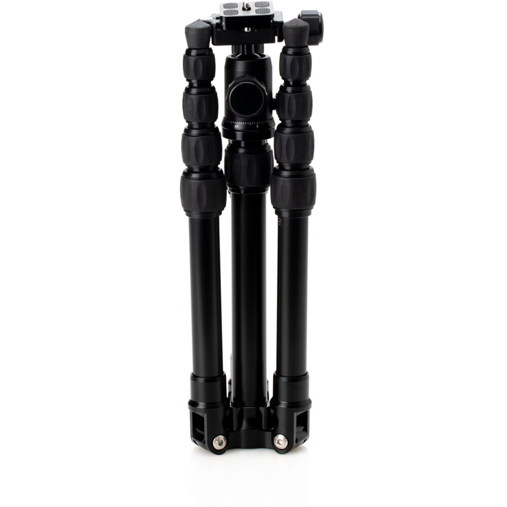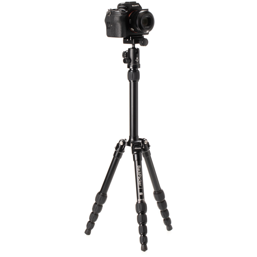 The MeFOTO BackPacker Classic Aluminum Travel Tripod Kit from Benro offers a sturdy, compact aluminum alloy tripod that extends to 52", supports up to 8.8 lb, and has reverse-folding legs that allow it to fold down to a comapact and portable 12.6". It features a black color accent extends to the included, matching Q-Series ball head.