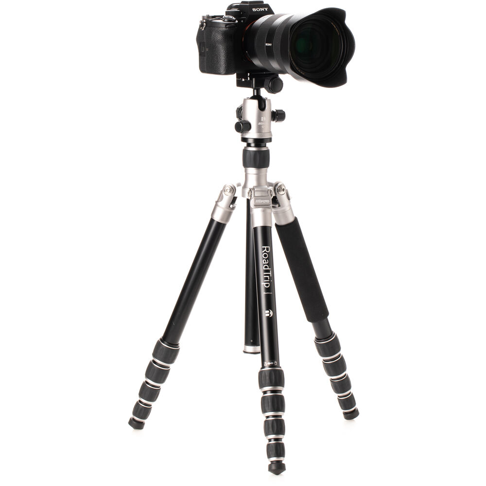 The MeFOTO RoadTrip Classic Series 1 Tripod with Monopod and Ball Head Kit from Benrooffers a sturdy, compact aluminum alloy tripod that extends to 61.6", supports up to 17.6 lb, and folds down to a compact 15.4" for easy storage or travel. The RoadTrip is actually two camera supports in one. A foam-cushioned, removable leg attaches to the center column to convert to full featured 63.9" tall monopod.