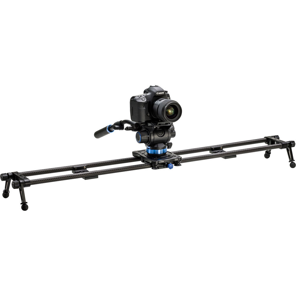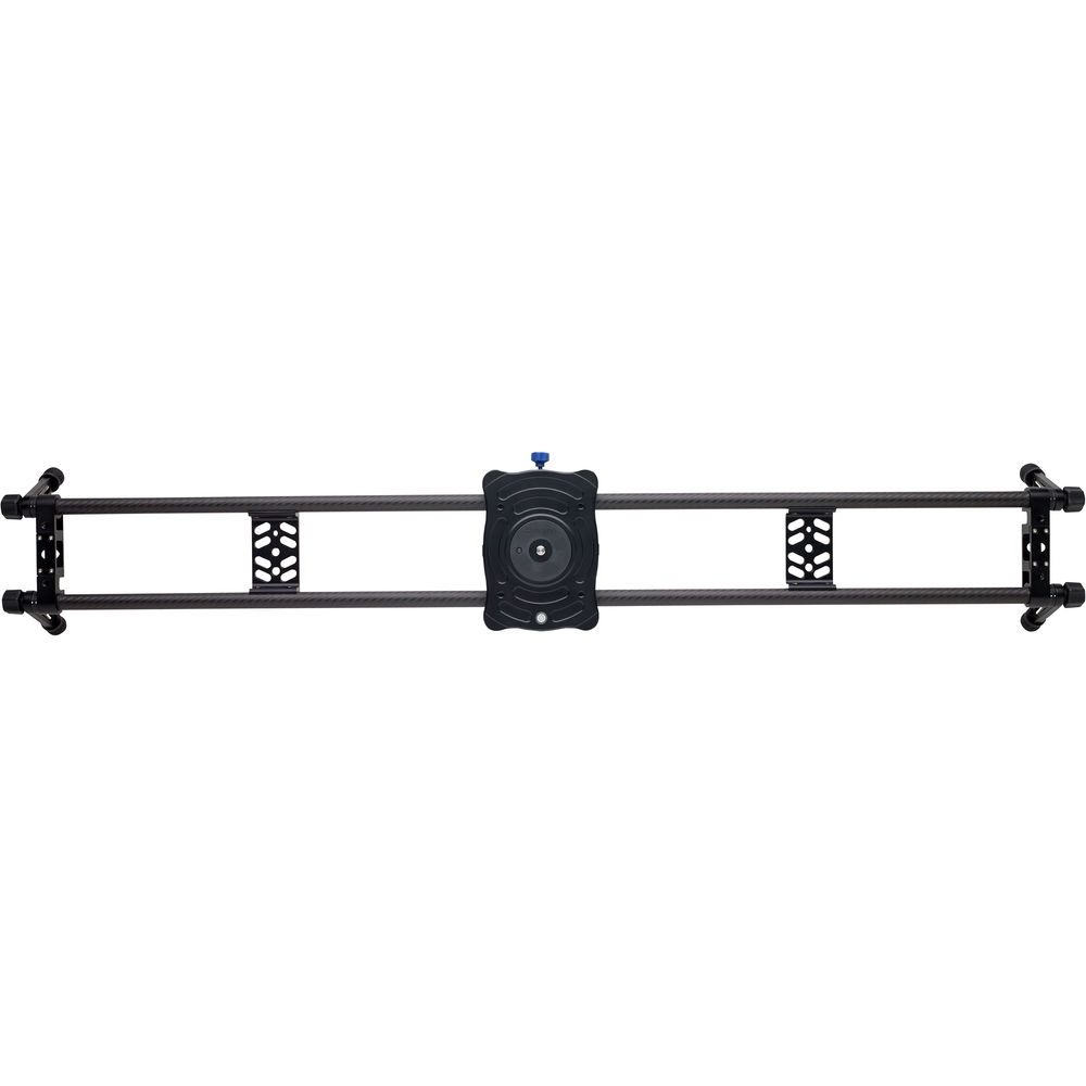 This Benro MoveOver8B Carbon Fiber Slider with Case includes an aluminum slider carriage that runs on carbon fiber rails with 35.4" of actual carriage travel, and a soft carry case. The carriage features a flat mounting surface with a 3/8"-16 threaded mounting stud for mounting your flat base fluid head, and it features pre-tensioned roller bearings for a smooth glide. A built-in friction brake is controlled by a single knob, allowing you to adjust the friction on the slider, or even use it as a brake when the slider is level.
