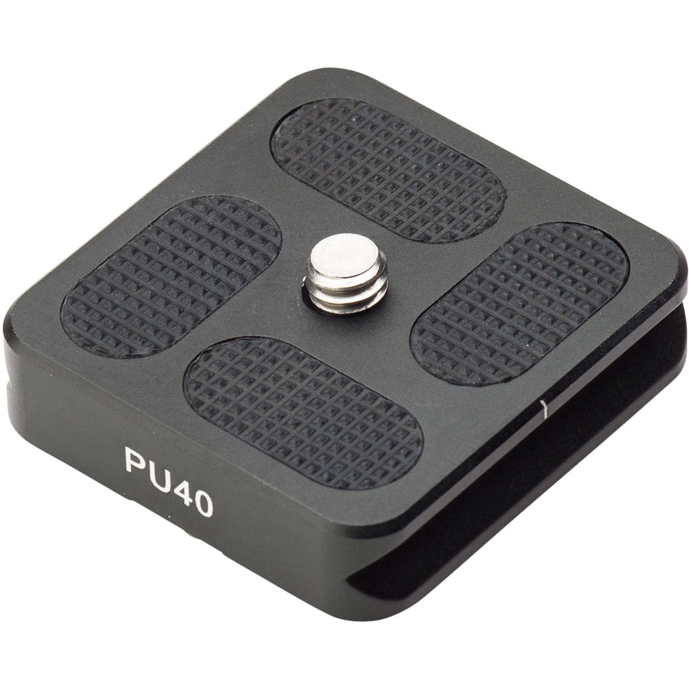 The PU40 Universal Quick Release Plate from Benro is a universal, Arca-type compatible quick release plate which allows the user to mount most camera bodies and mid-size lenses to an Arca-type clamp. The plate is constructed of solid aluminum and features a 1/4"-20 mounting screw and anti-twist rubber inlays.