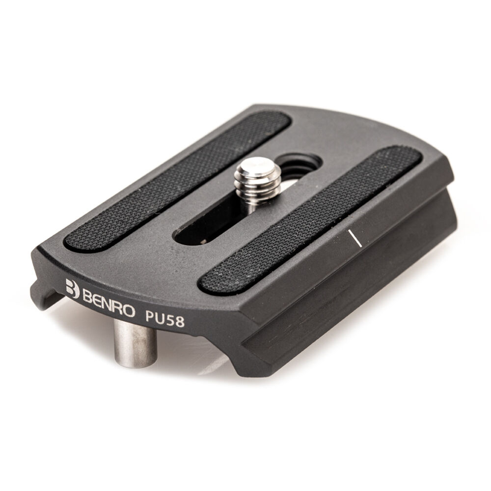 The PH58 Arca-Type Quick Release Plate from Benro is a standard snap-in Arca-type quick release plate for use with any virtually any Arca-type compatible quick release set, including the Benro MSDPL46C SupaDupa Carbon Fiber Monopod with Leveling Pan Head. This plate is included with the MSDPL46C and is available here as a spare or replacement part. It features a standard 1/4"-20 camera mounting screw and uses rubberized anti-twist traction strips for stability and protecting the camera body. Dual safety screws prevent the plate from releasing from a clamp prematurely, preventing possible damage.