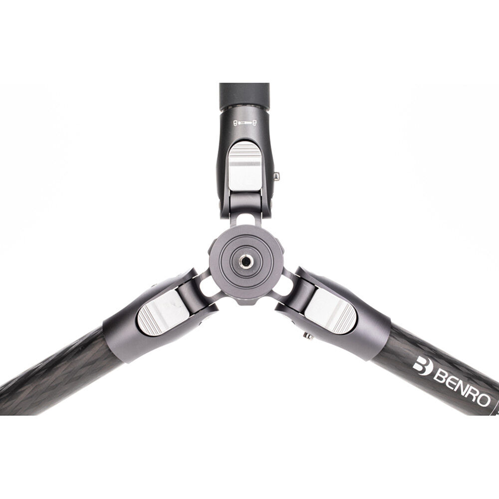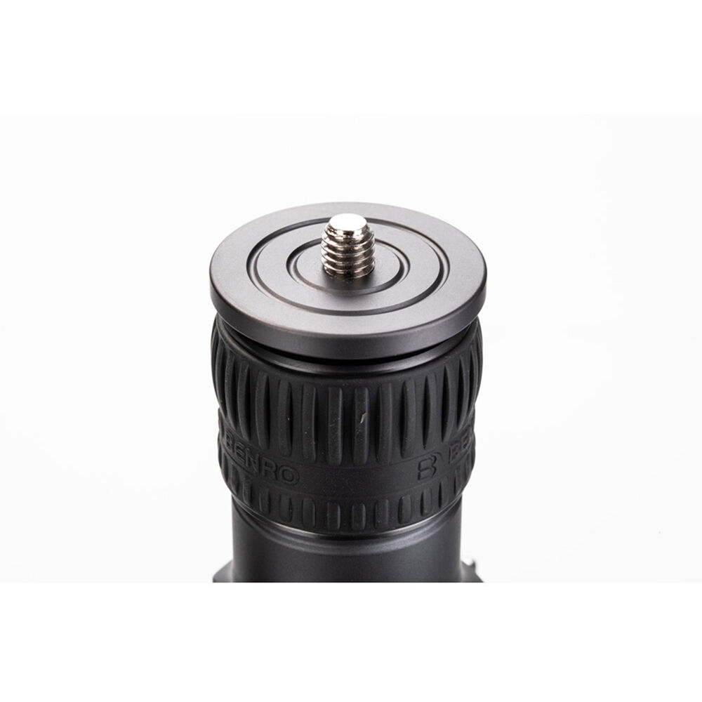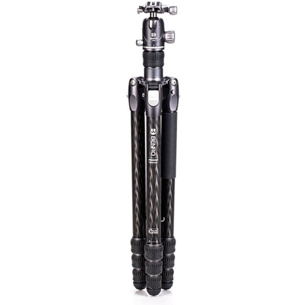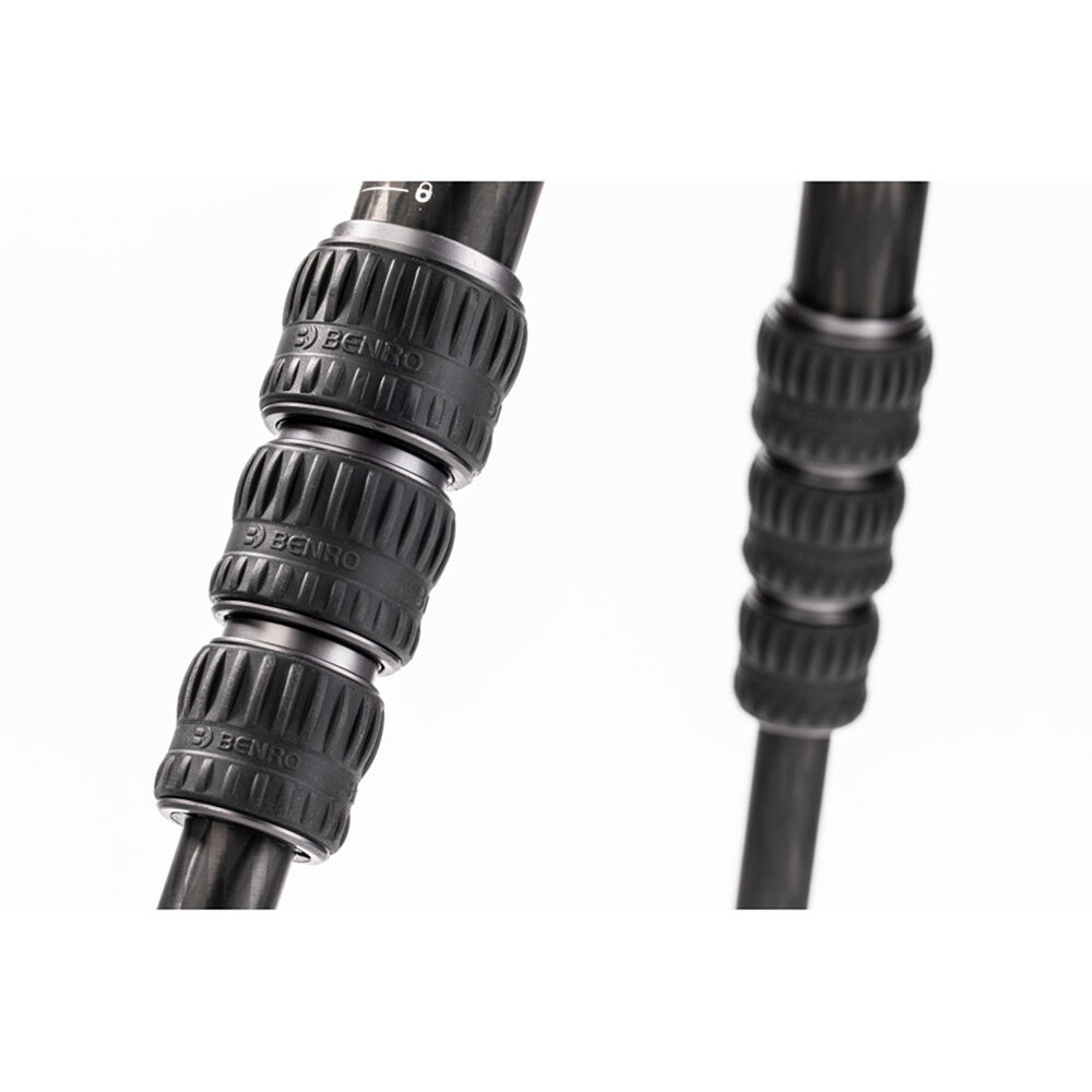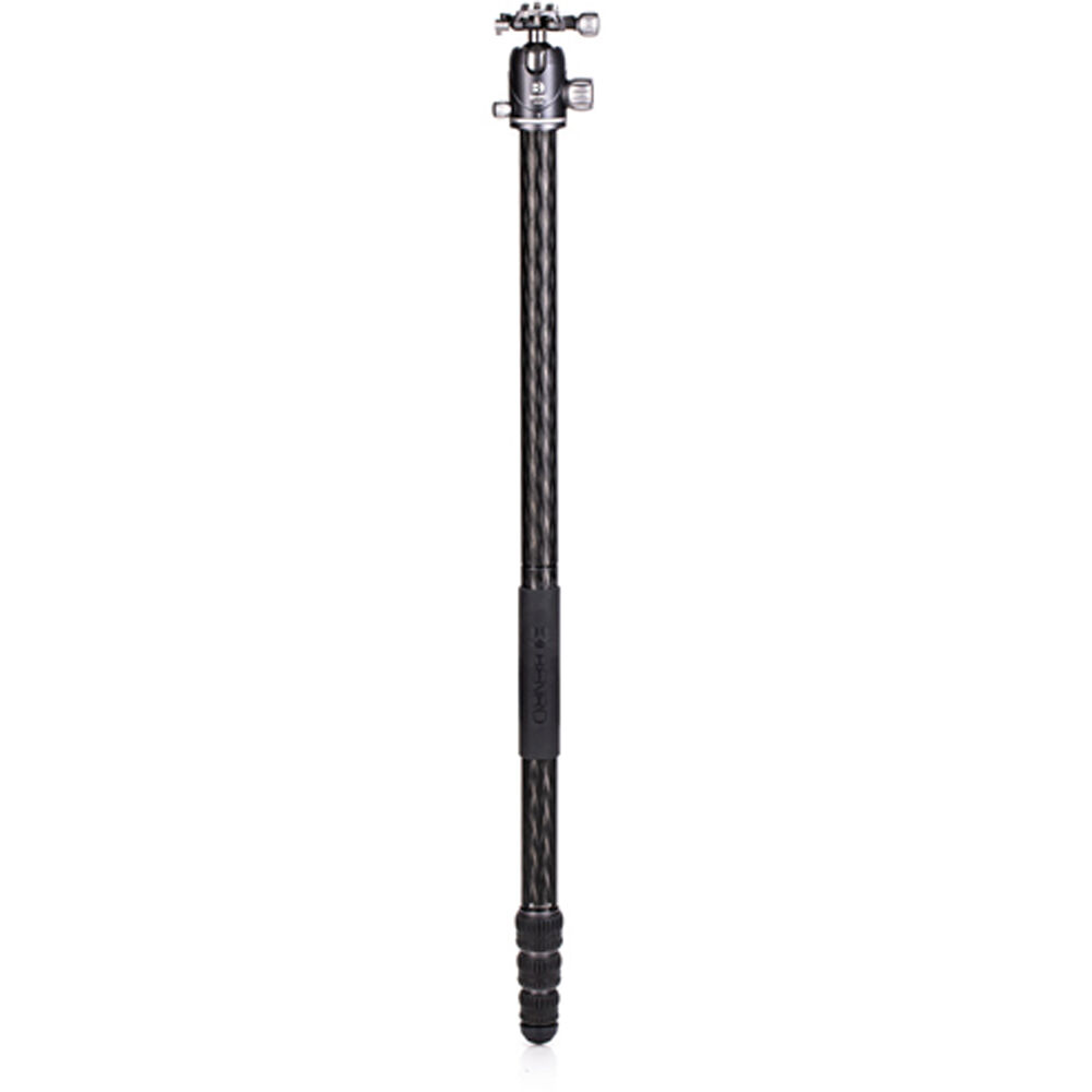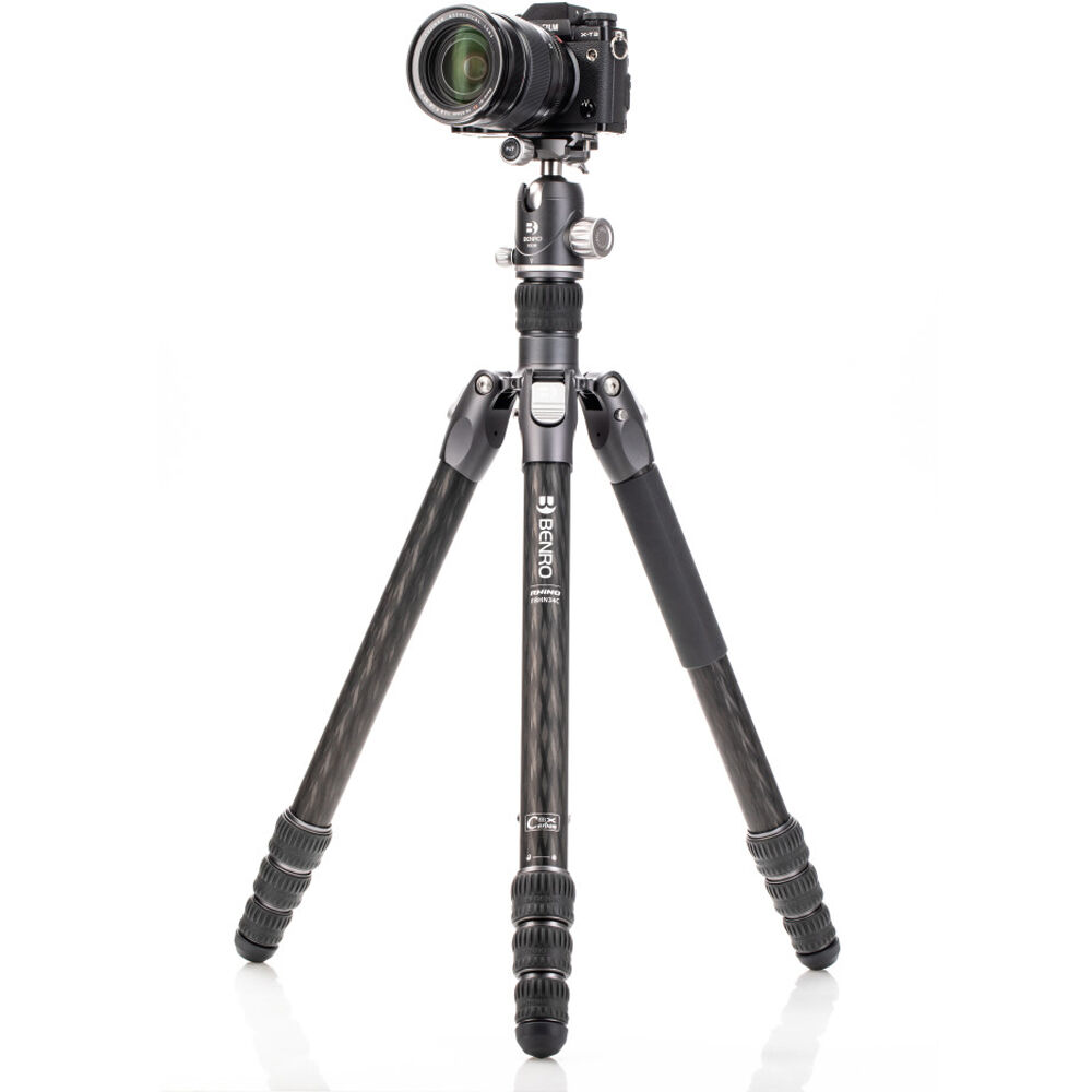 The Rhino Three Series Travel Tripod with VX30 Head from Benro combines a lightweight and versatile carbon fiber leg set with a dual panoramic ball head. With a reverse folding design, it is extremely portable and is equally suited for the studio, outdoors, and travel. The legs offer independent spread and three locking positions and incorporate automatic leg angle adjustment for fast and sure setup. The legs are reversible for inverted shooting and storage, and the aluminum leg spider features three 1/4"-20 accessory mounts for extension arms, monitors, lights, and more. For shoots where even a lightweight tripod may be more than required, the center column attaches to a removable leg to create a full-sized monopod.