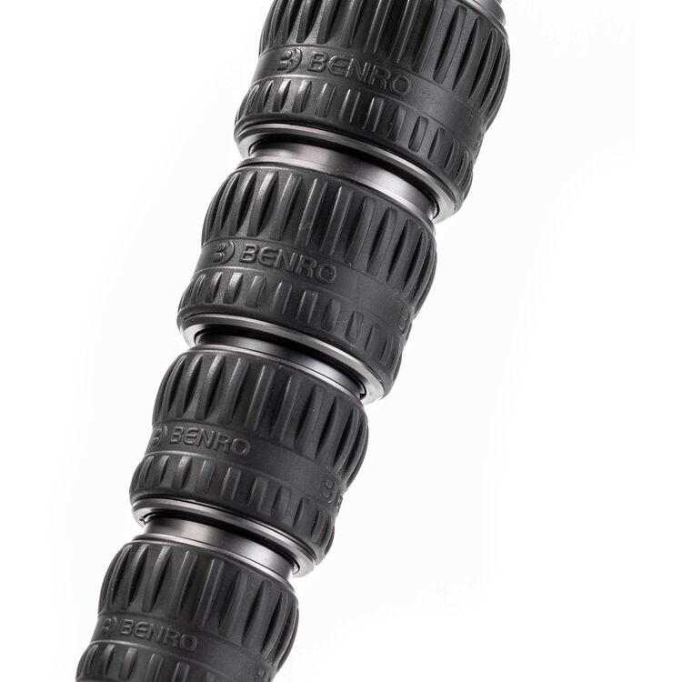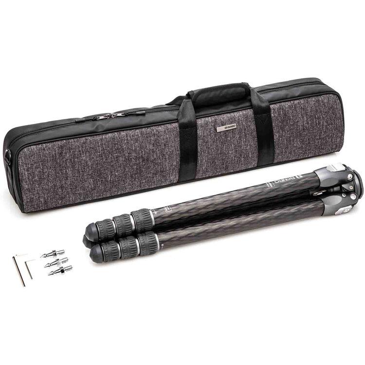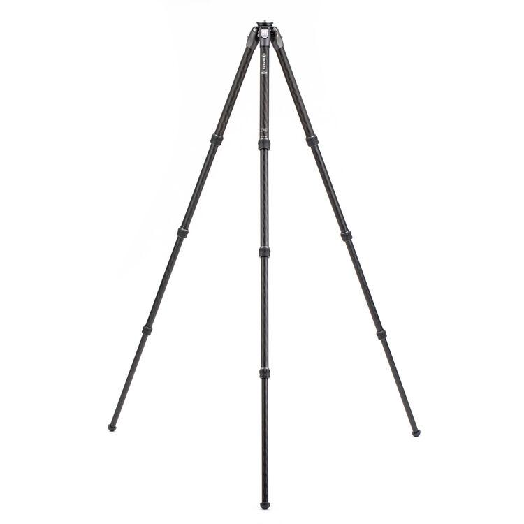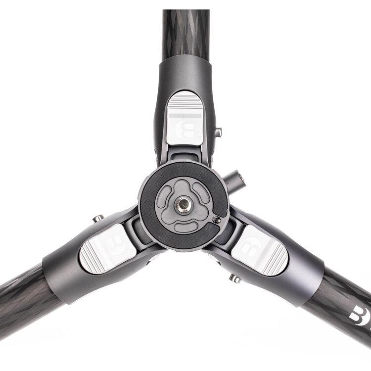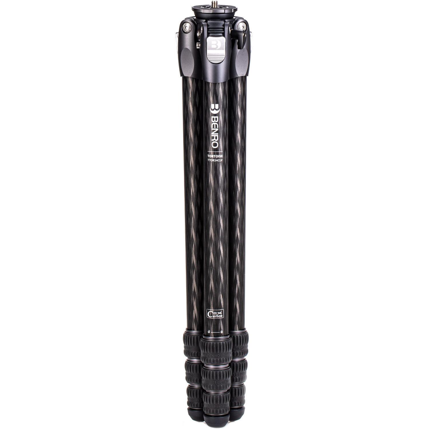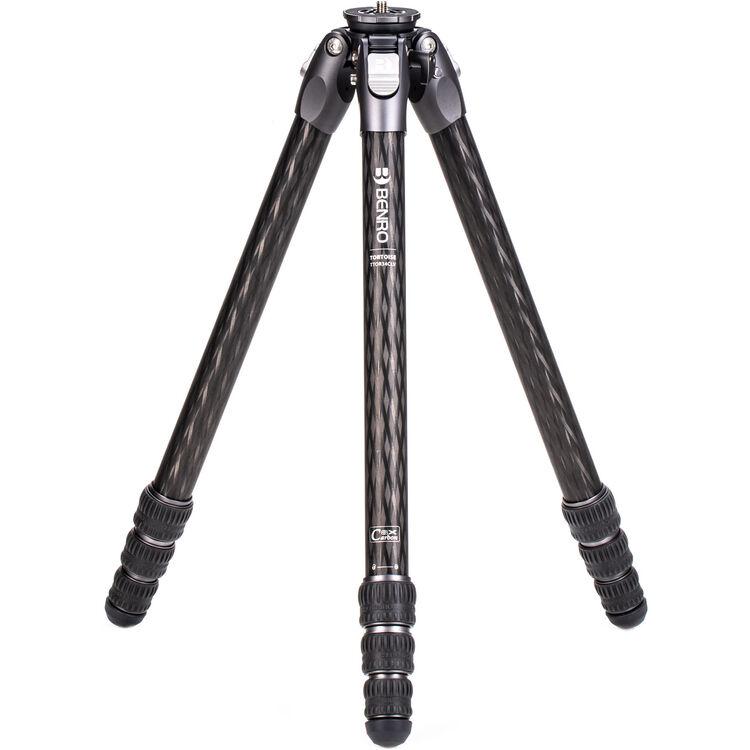 The Tortoise 3 Columnless Carbon Fiber Tripod with Leveling Base from Benro is a portable, travel-friendly tripod leg set that supports loads up to 44.1 lb and has a working height range of 9.3 to 64.4". The carbon fiber legs utilize twist-lock joints for fast and secure setup. This tripod features a head-leveling base for quickly achieving camera alignment with the horizon. The head fitting on the legs incorporates a 1/4"-20 accessory mounting port, allowing a variety of accessories to be attached. The tripod features independent leg spread with three locking angles and a push-button locking system. The rubber feet provide a grip whether the legs are vertical, on an angle, or nearly horizontal when positioned. The rubber feet can be replaced with the included spiked feet for use on slick surfaces.