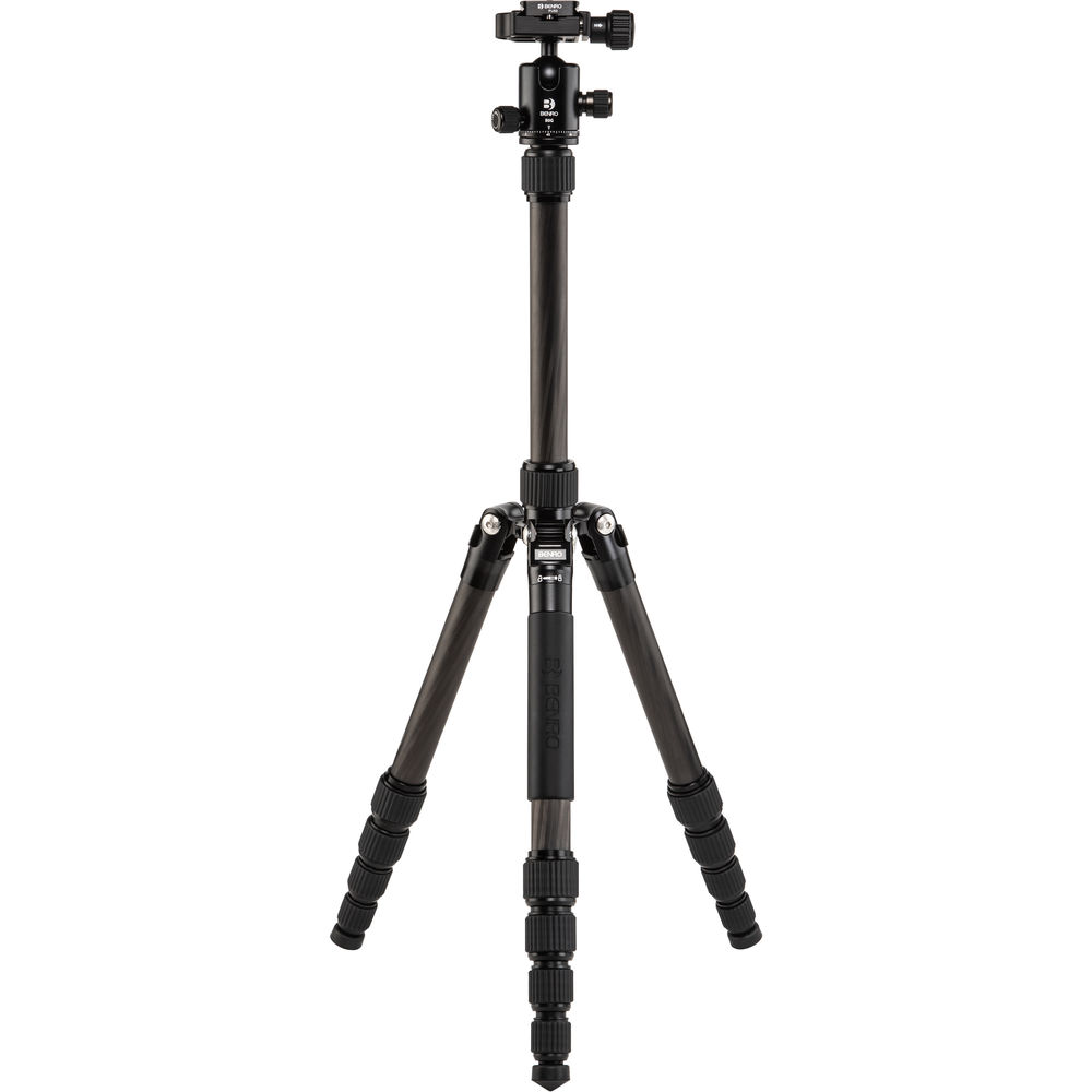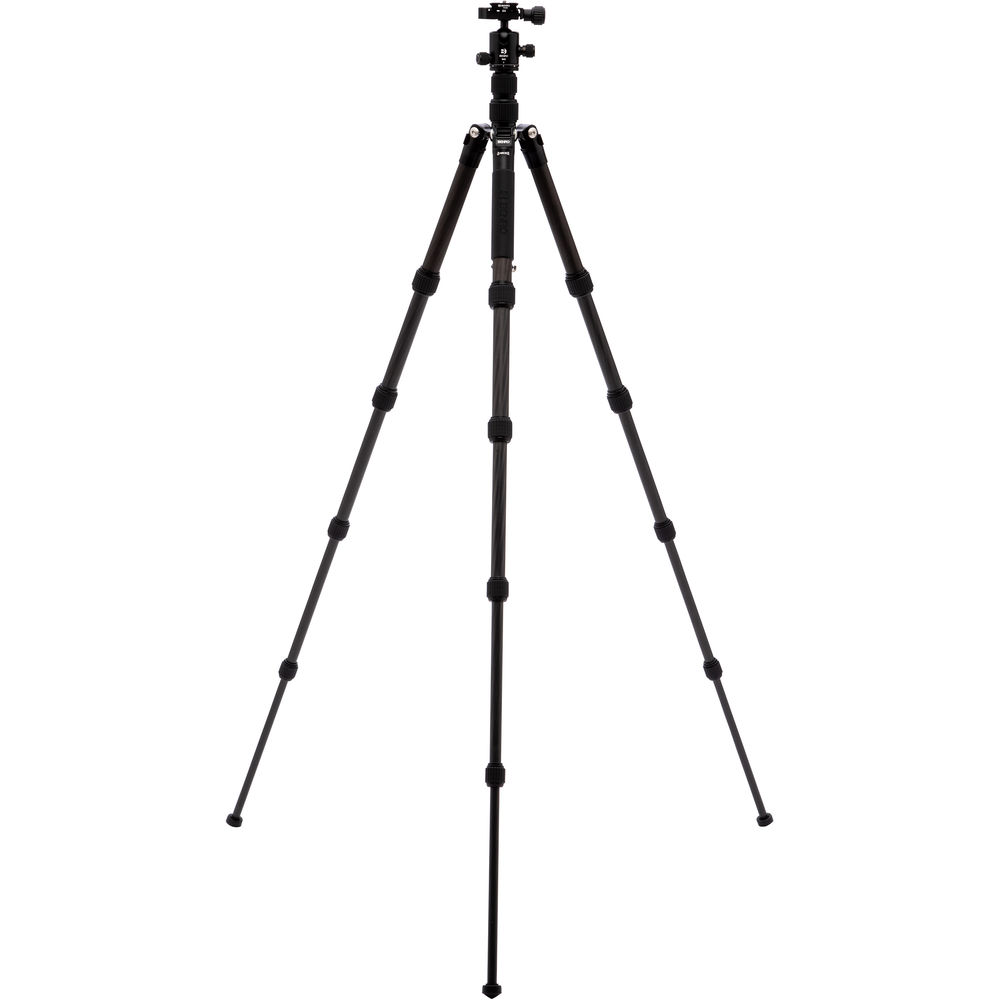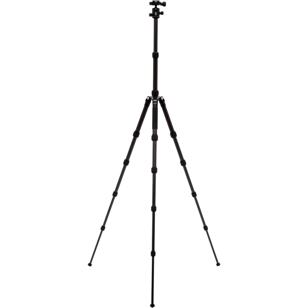 The black 1 Series Tripster Travel Tripod from Benro is a five-section carbon fiber tripod with a two-section center column that combine to reach a maximum height of 59.3", while weighing 3 lb. Splaying the legs completely out, the support drops to a minimum height of 14". Moreover, the legs fold in the reverse to a compact 14.2", so you can carry it to the next location. The removable center column and one leg can combine to create a monopod with a maximum height of 61.4". The Arca-type compatible ball head has a load capacity of 18 lb and includes a quick release plate with a 1/4"-20 camera mounting thread. Additionally, a 1/4"-20 socket located on the yoke of the tripod is used to attach other accessories that would aid you in creating a photograph.