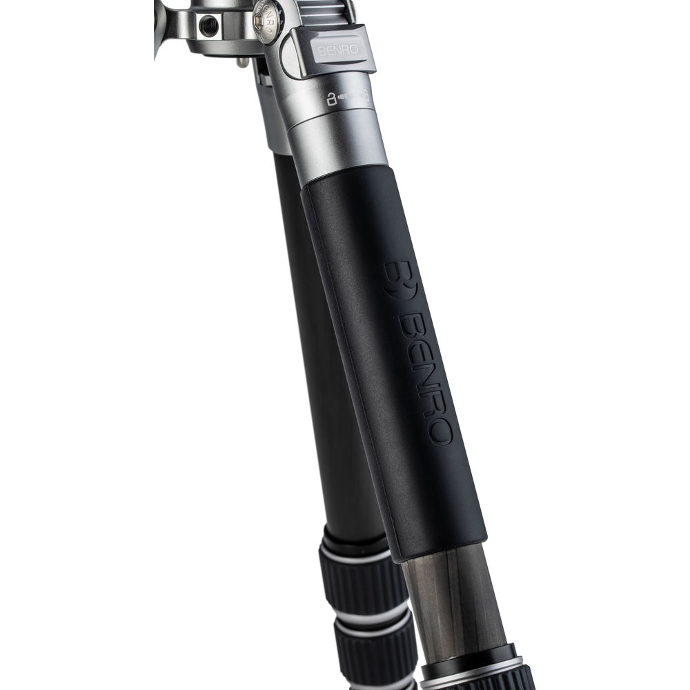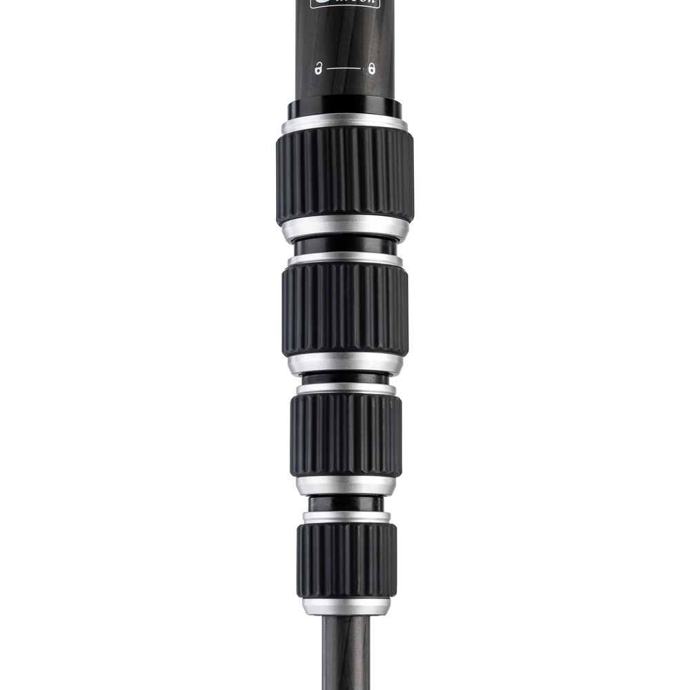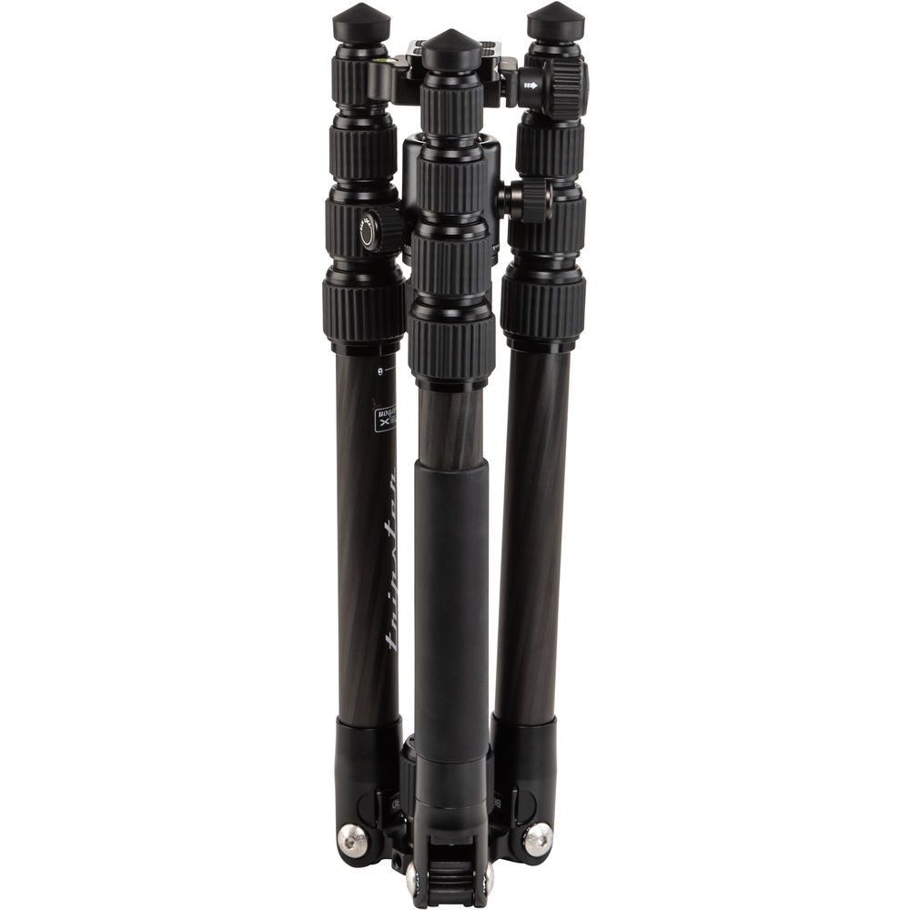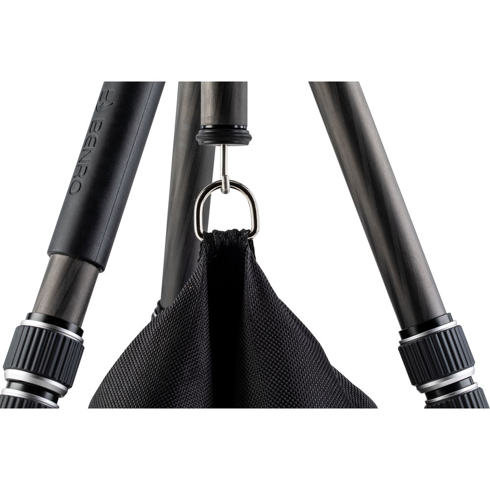 The black 1 Series Tripster Travel Tripod from Benro is a five-section carbon fiber tripod with a two-section center column that combine to reach a maximum height of 59.3", while weighing 3 lb. Splaying the legs completely out, the support drops to a minimum height of 14". Moreover, the legs fold in the reverse to a compact 14.2", so you can carry it to the next location. The removable center column and one leg can combine to create a monopod with a maximum height of 61.4". The Arca-type compatible ball head has a load capacity of 18 lb and includes a quick release plate with a 1/4"-20 camera mounting thread. Additionally, a 1/4"-20 socket located on the yoke of the tripod is used to attach other accessories that would aid you in creating a photograph.