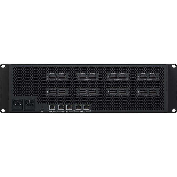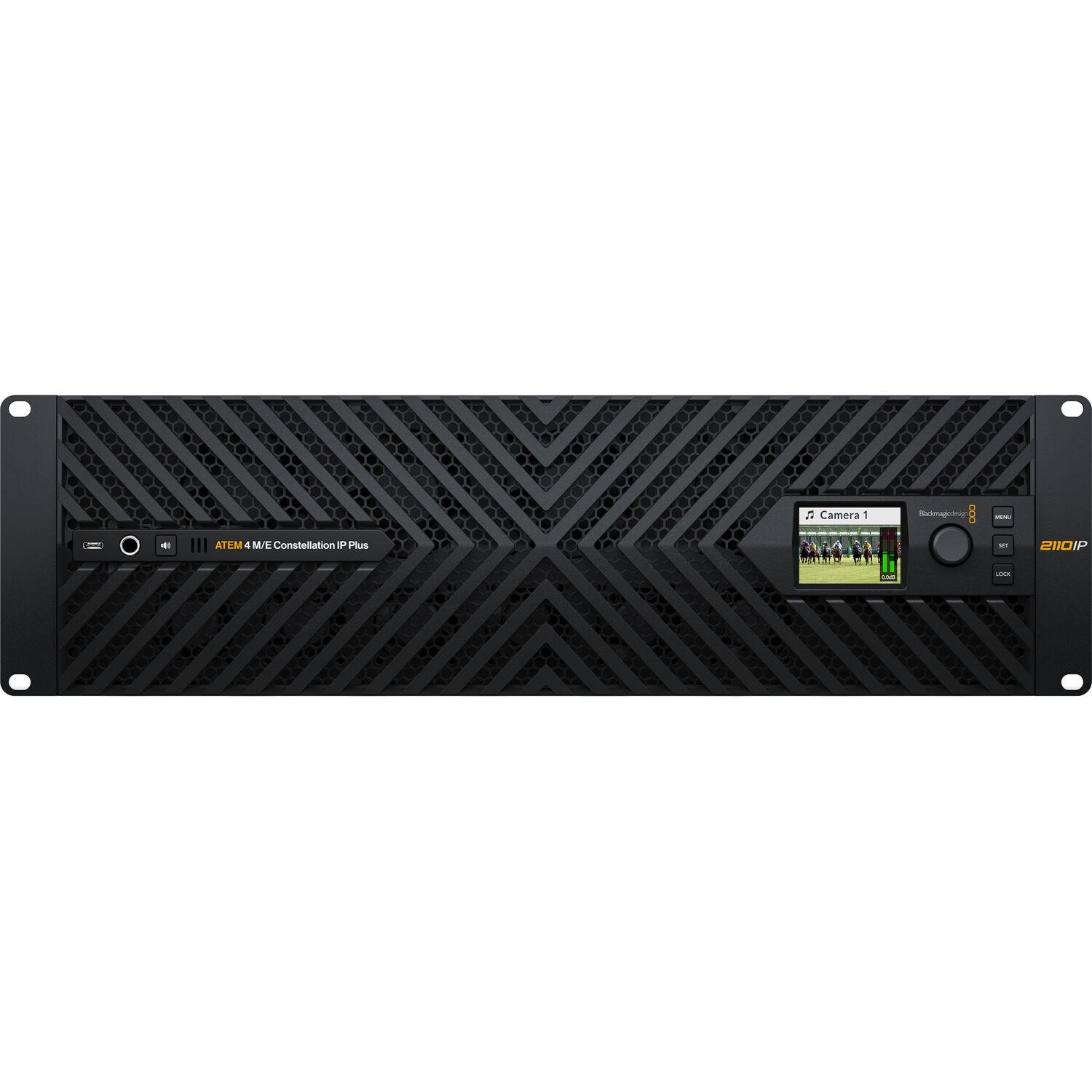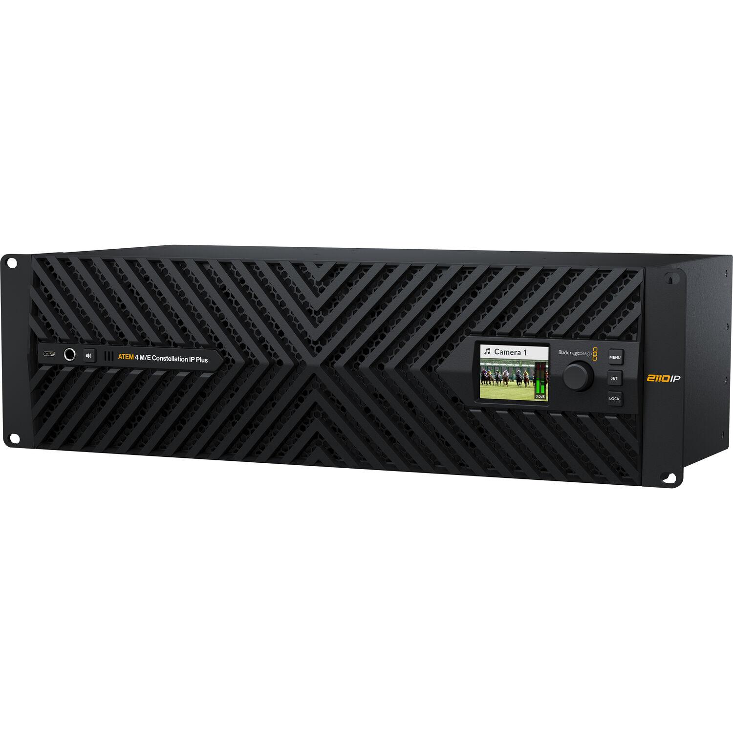 A new addition to the Constellation line, the ATEM 4 M/E Constellation IP Plus Switcher from Blackmagic Design is a 3 RU live broadcast rackmount switcher that features 64 SMPTE 2110 IP video inputs and 52 outputs (including multiview) via 100G fiber Ethernet ports. Each 100G port comes as a redundant pair with standards converters on each port, making it ideal for live broadcast applications. The switcher is controlled using the ATEM Software Control app.