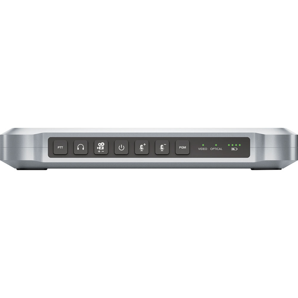 Made of aircraft-grade aluminum, the camera converter can withstand bumps and shocks without breaking. Built-in button pad allows you to control power, microphone level, talkback and video, and battery indicators. You can update converters firmware via a USB port. The camera converter can be used for applications such as concerts, sporting events, lecture theaters, houses of worship, surveillance, or any remote camera location.