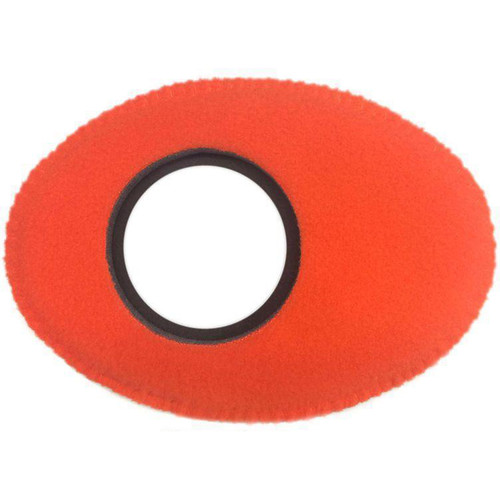 The Oval Extra-Large Viewfinder Eyecushion in orange fleece, from Bluestar, features outside dimensions of 5.1 x 3.6" to securely fit over many common external and built-in viewfinders. These include the Alphatron, the Kamerar QV-1, VF-4, and VF-4+ EVFs, the MagView 3:2, 4:3, and 16:9 EVFs, those of the Canon C100, C200, C300, C500, XF300, XF305, and XF205 HD cameras, the EVFs of the Sony FS5, HVR-S270, HXR-NX100, and PXW-Z150 cameras, and many more. This fleece version is made of 100% synthetic material and provides a high level of softness and comfort for cold weather while enhancing light blockage. The fluffy feel reduces the rate of heat transfer, making the material feel warmer in cold conditions.