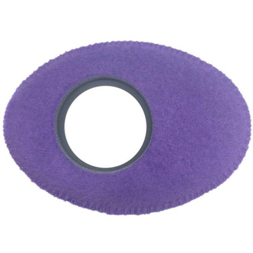 The Oval Extra-Large Viewfinder Eyecushion in purple fleece, from Bluestar, features outside dimensions of 5.1 x 3.6" to securely fit over many common external and built-in viewfinders. These include the Alphatron, the Kamerar QV-1, VF-4, and VF-4+ EVFs, the MagView 3:2, 4:3, and 16:9 EVFs, those of the Canon C100, C200, C300, C500, XF300, XF305, and XF205 HD cameras, the EVFs of the Sony FS5, HVR-S270, HXR-NX100, and PXW-Z150 cameras, and many more. This fleece version is made of 100% synthetic material and provides a high level of softness and comfort for cold weather while enhancing light blockage. The fluffy feel reduces the rate of heat transfer, making the material feel warmer in cold conditions.