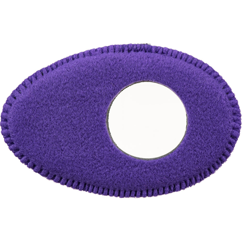 The Oval Long Viewfinder Eyecushion in purple fleece, from Bluestar, features outside dimensions of 5 x 3.3" to securely fit over many common external and built-in viewfinders. These include those of the Panasonic AF101, HDX 900P, HMC81, HPX2100, or HPX3000, the Sony FS100E, PMW-200, PXW-X70, PXW-X200, or PXW-Z90V, the JVC GY-HMC750, and many more. This fleece version is made of 100% synthetic material and provides a high level of softness and comfort for cold weather while enhancing light blockage. The fluffy feel reduces the rate of heat transfer, making the material feel warmer in cold conditions.