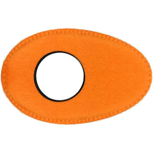 The Oval Long Viewfinder Eyecushion in orange Ultrasuede, from Bluestar, features outside dimensions of 5 x 3.3" to securely fit over many common external and built-in viewfinders. These include those of the Panasonic AF101, HDX 900P, HMC81, HPX2100, or HPX3000, the Sony FS100E, PMW-200, PXW-X70, PXW-X200, or PXW-Z90V, the JVC GY-HMC750, and many more. This Ultrasuede version is made of 100% non-woven material consisting of intertwined, brushed, ultra-fine fiber strands. It provides a high level of softness and a superior moisture absorption rate, and it can be used in any climate.