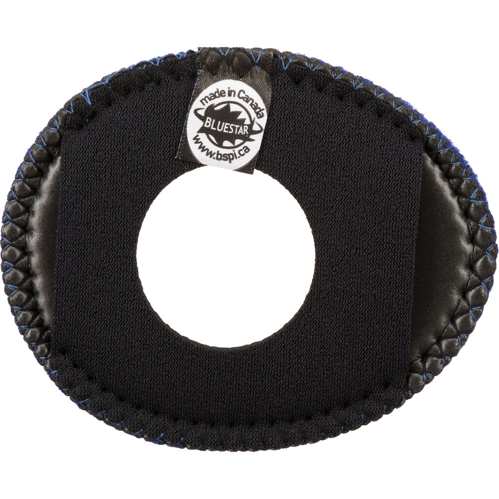 The Oval Small Viewfinder Eyecushion in blue fleece, from Bluestar, features outside dimensions of 3.8 x 3" to securely fit over many common external and built-in viewfinders. These include the GGS Perfect LCD Viewfinder, JJC ES-A6500G, LCDVF, and Letus Hawk, as well as those of the Sony Betacam, FS7, PXW-X320L, PXW-X320, PMW-400, and PMW-500 cameras. This fleece version is made of 100% synthetic material and provides a high level of softness and comfort for cold weather while enhancing light blockage. The fluffy feel reduces the rate of heat transfer, making the material feel warmer in cold conditions.
