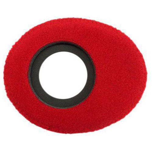 The Oval Ultra Small Viewfinder Eyecushion in red fleece, from Bluestar, features outside dimensions of 3.3 x 2.6" to securely fit over many common external and built-in viewfinders. These include the Hoodman Hoodeye, JJC Oval Shape EyeShade, JJC Viewfinder, Bolex H16, and the viewfinder of the Panasonic GH5 with a compatible oval eyecup similar to the Hoodeye. This fleece version is made of 100% synthetic material and provides a high level of softness and comfort for cold weather while enhancing light blockage. The fluffy feel reduces the rate of heat transfer, making the material feel warmer in cold conditions.