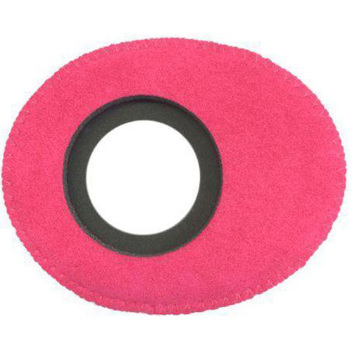 The Oval Ultra Small Viewfinder Eyecushion in pink Ultrasuede, from Bluestar, features outside dimensions of 3.3 x 2.6" to securely fit over many common external and built-in viewfinders. These include the Hoodman Hoodeye, JJC Oval Shape EyeShade, JJC Viewfinder, Bolex H16, and the viewfinder of the Panasonic GH5 with a compatible oval eyecup similar to the Hoodeye. This Ultrasuede version is made of 100% non-woven material consisting of intertwined, brushed, ultra-fine fiber strands. It provides a high level of softness and a superior moisture absorption rate, and it can be used in any climate.