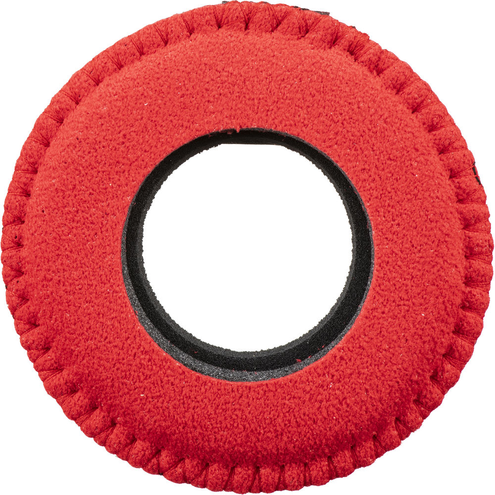 The Round Ultra Small Viewfinder Eyecushion, in red Ultrasuede, from Bluestar, is designed to fit securely over the eyecups of many compact DSLR and mirrorless cameras. It's made with thicker foam than that of standard Bluestar eyecushions to allow for better handling of the compact cameras. The eyecups of these cameras usually don't stick out very far, so the extra thickness is needed to provide more cushioning.
